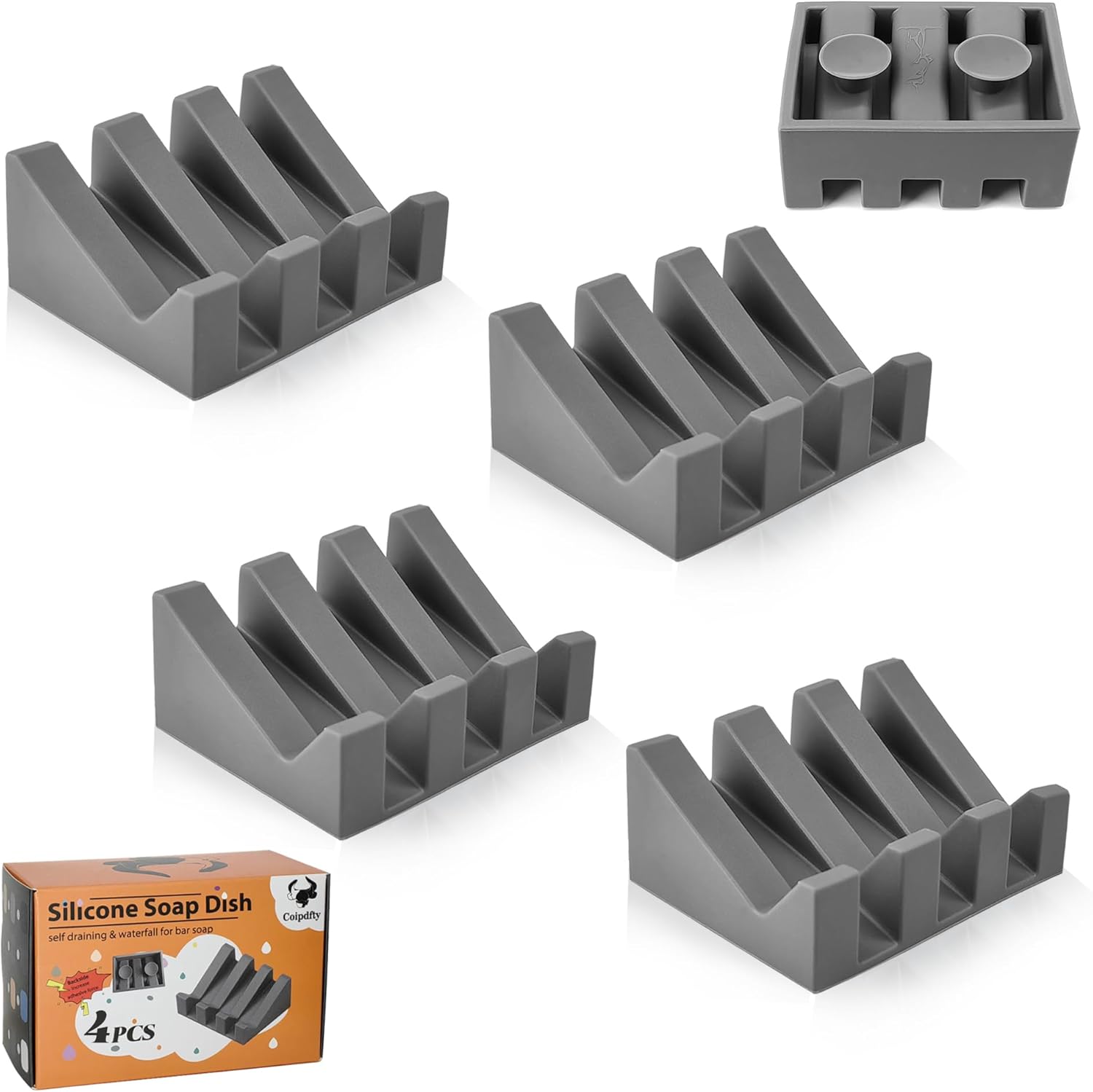 Self Draining Soap Dish,Silicone Suction Cup Soap Holder, Bathroom Soap Dish for Bar Soap,Can Extend Soap Life,Bathroom, Bath Tub, Kitchen Sink (4, Grey)