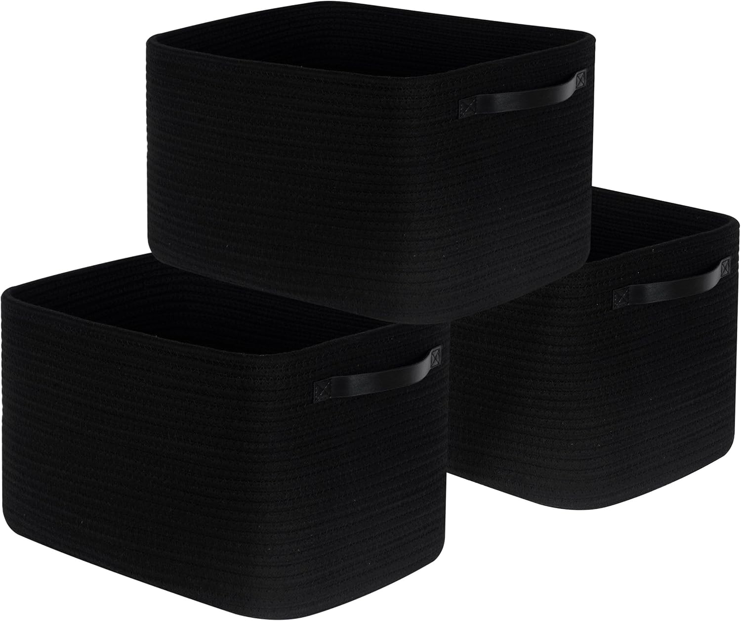 MINTWOOD Design 3-Pack Storage Baskets for Shelves, Decorative Baskets for Organizing, Woven Baskets for Storage, Book Basket Cube Bin Box, Pantry Closet, Shoe Organizer, Black / Black