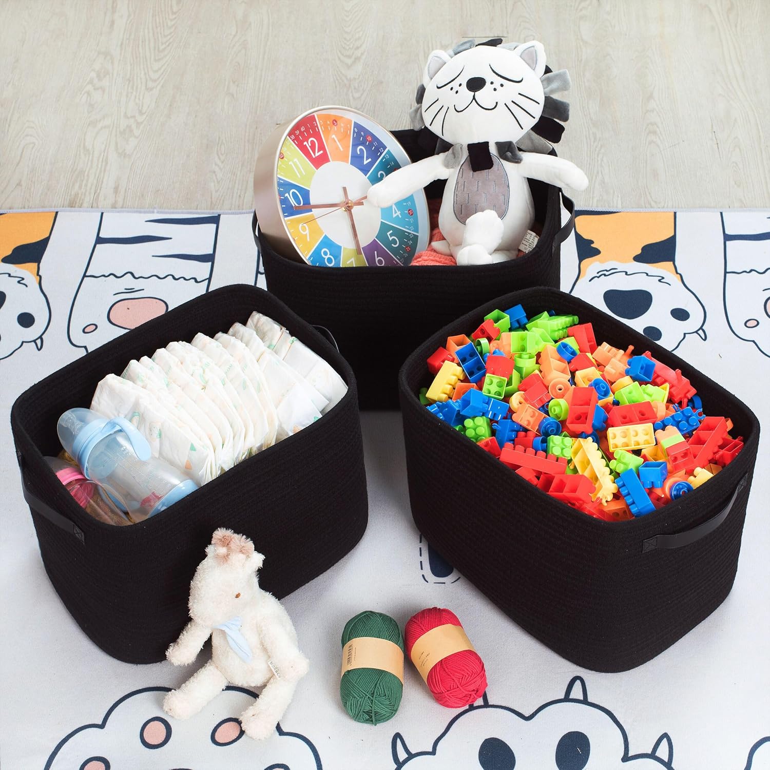 - Handcrafted & No Sharp Edges - Handmade from premium materials, our baskets are soft to the touch, yet sturdy enough to hold its shape. The workmanship ensures there are no sharp or hard edges to scratch furniture. Use them with complete peace of mind in recreation room, playroom, pet toy room, living room, bedroom, nursery room, bathroom, laundry room, mudroom, pantry, arts & crafts room, home office or even garage.