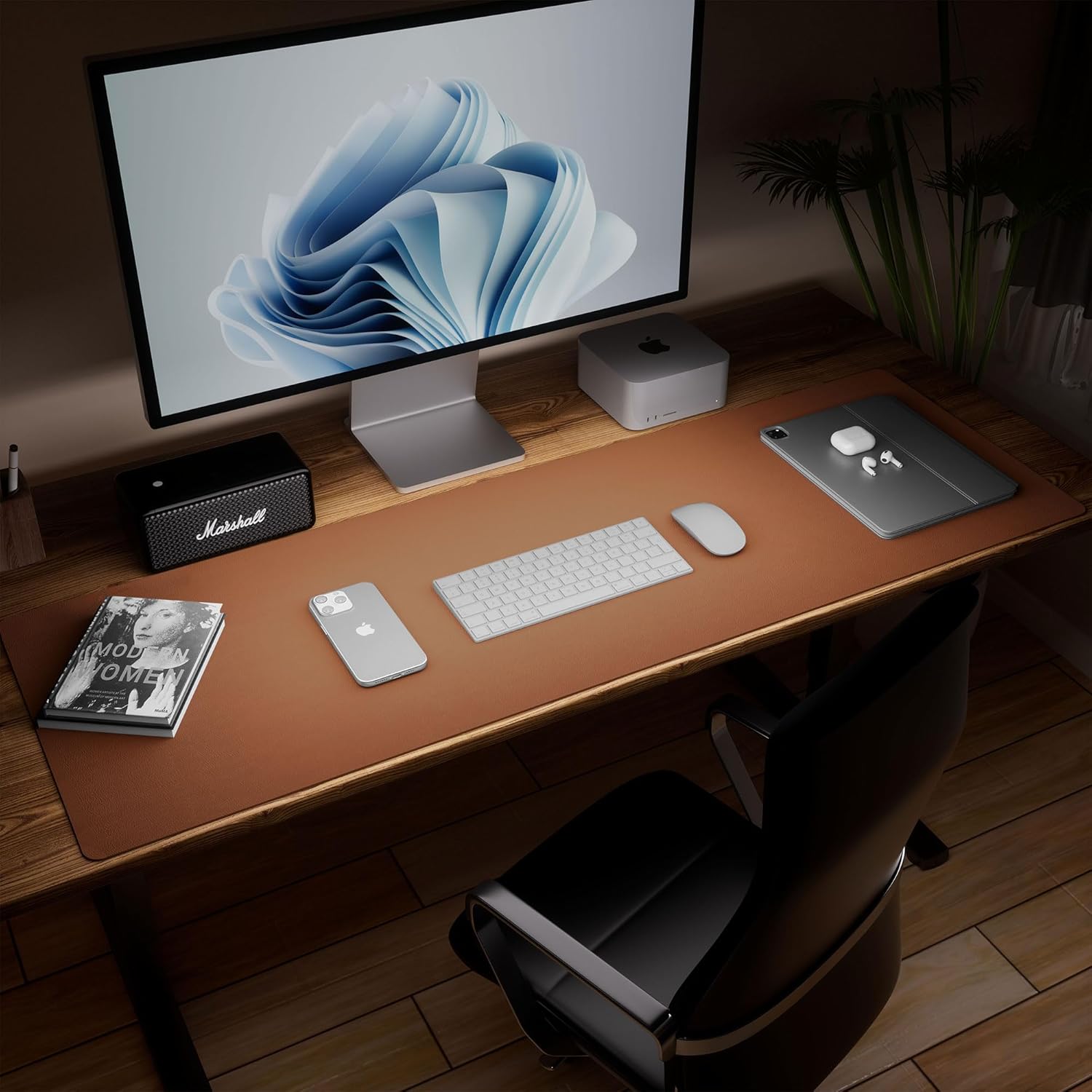 Aothia Leather Desk Pad Protector, Office Mat, Large Mouse Pad, Laptop Desk Pad, Non-Slip PU Leather Blotter, Waterproof Writing Pad for Office and Home (Brown, 47" x 17")