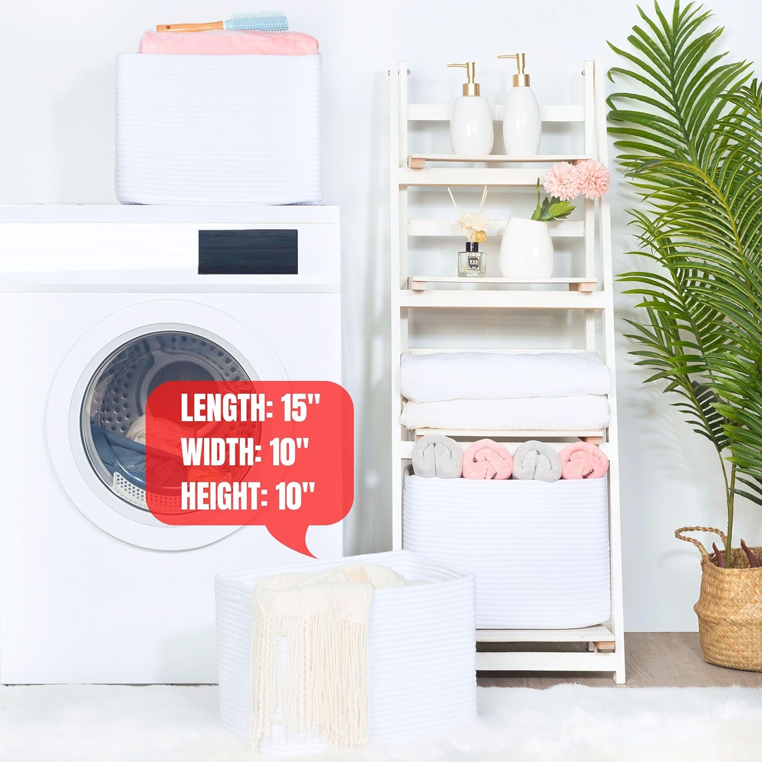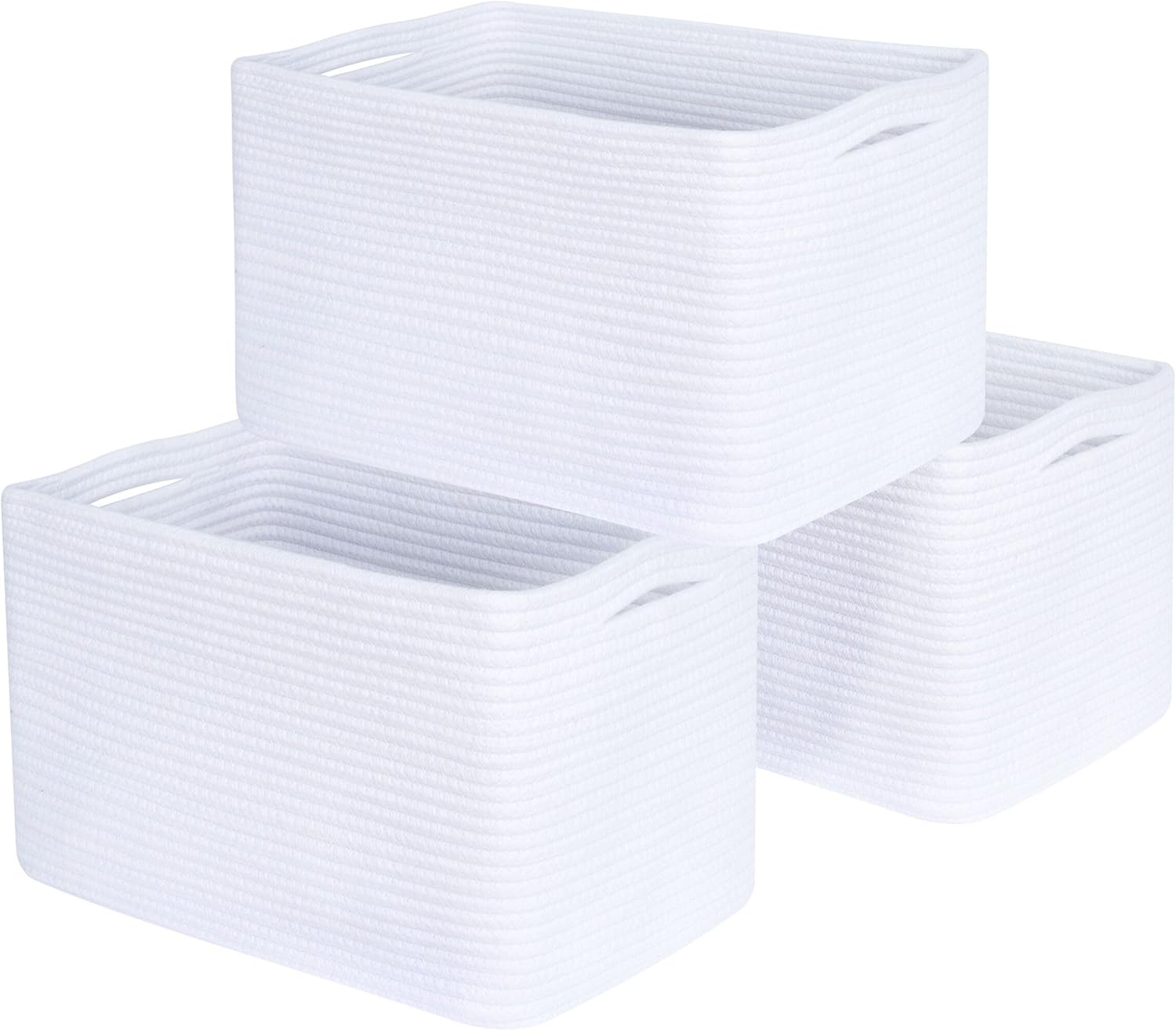 MINTWOOD Design 3-Pack Decorative Woven Storage Baskets for Shelves, Cube Bin Box for Organizing Books, Shoes, Dog Toys, Pantry Closet and Living Room Organizer, Full White