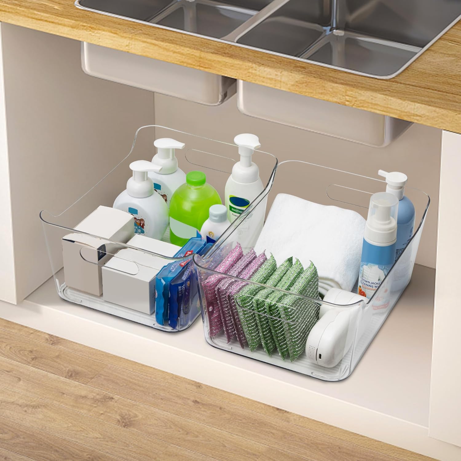 Tiawudi 6 Pack Plastic Storage Bins, Extra Large Pantry Organizer, 13.5" x 10" Clear Storage Containers and Organizer Bins, Multi-Use Bins for Home, Kitchen, Closet and Cabinet