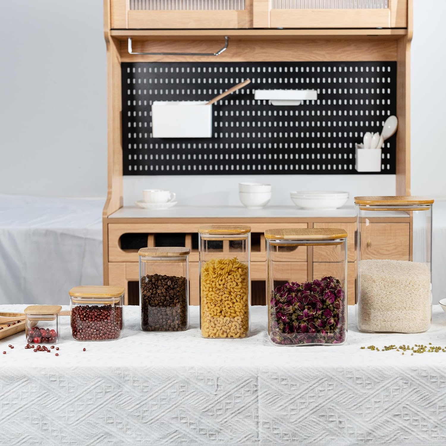 - [Multi-functional glass storage container]- This D2scrma airtight glass canisters with a natural bamboo lid and a good silicone seal ensures an airtight storage environment that keeps items fresh and extends their shelf life. Not only for kitchen storage, but even for pet food or other household items such as laundry beads, bathroom cotton balls, etc.