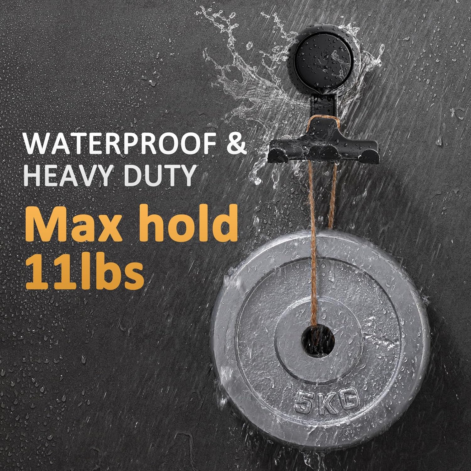 - Powerful suction cup: The shower hooks Suction Cup with bionic design of octopus tentacles ensures weather proof(-4°F-174°F), waterproof, oil-proof and anti-aging; Shower razor hook with thicken plastic can hold up to 11 lbs EACH and stick sturdy for years.You can remove and re-install it in a new location for reusing