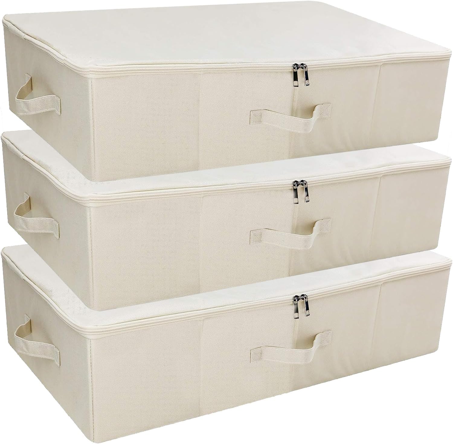 iwill CREATE PRO 3Pcs Collapsible Rigid Underbed Storage Bins, 27.5 * 15.7 * 7", Folding Fabric Storage Boxes for Clothing, Blankets, Shoes in Closet, Wardrobe, Beige
