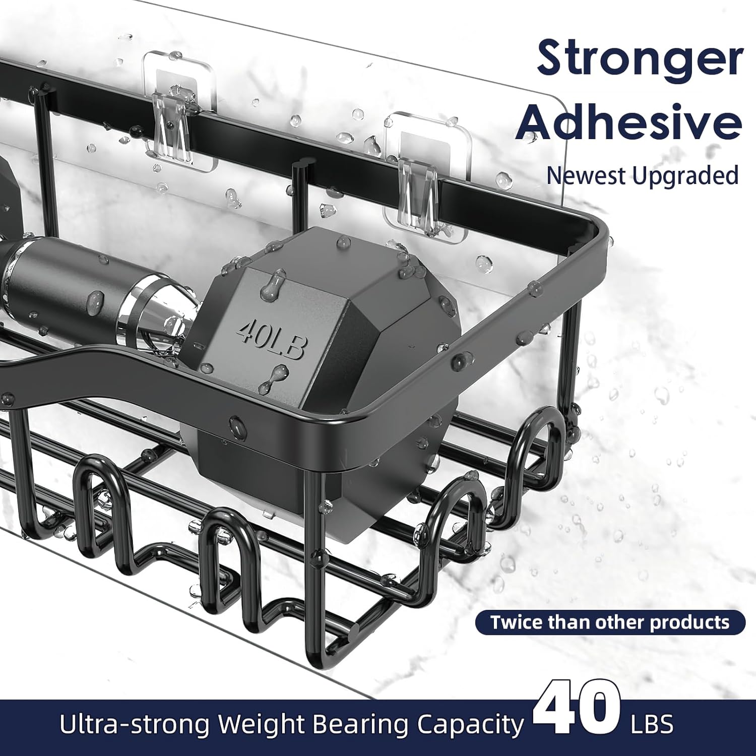 - Newest Upgraded Stronger Adhesive Bathroom Caddy: The transparent traceless adhesives give ultra-strong reliability with up to 40 lbs of bearing weight, which is tested by professional institutions. The bathroom shower organizer has twice the load-bearing capacity of the old version. NESOMI bathroom shelf can be installed without drilling. The storage shelves will never worry about falling issues after proper installation, and make your family space use to the extreme
