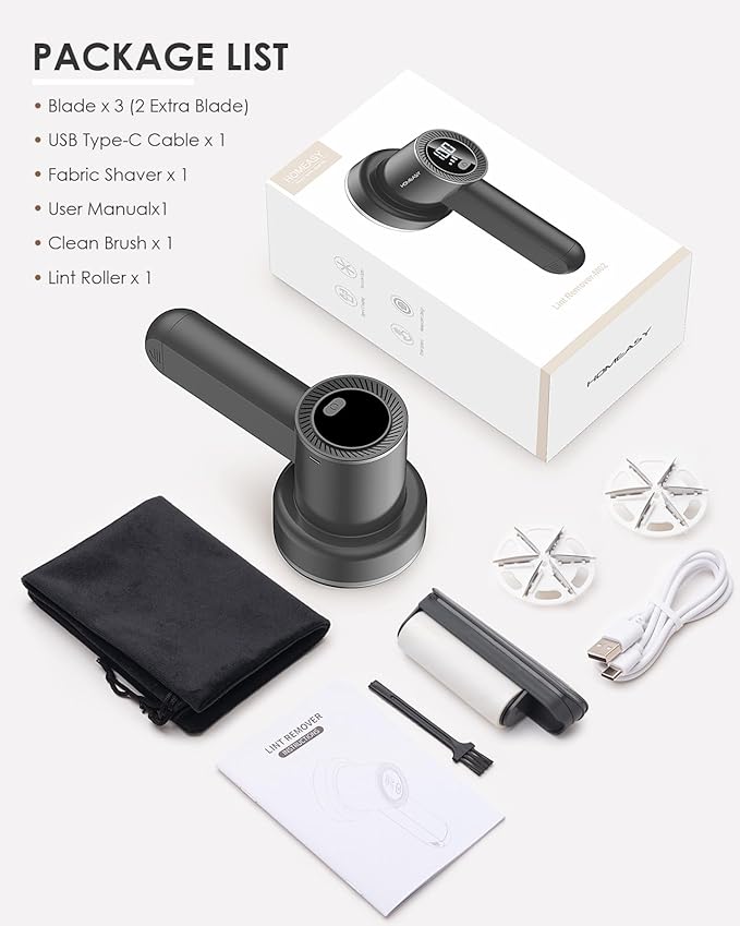 - 2. Efficient Lint Shaver for Furniture - Our sweater lint remover comes with 3 speed settings (I/II/III). Firstly, this fabric lint pill shaver mesh cover has 3 sizes of holes, which can quickly clean up hair balls of different sizes. Secondly, compared to the traditional 3-leaf blades, we equip with 3pcs rust-proof 6-leaf blades, which can greatly improve the working efficiency of the fabric lint remover and meet the needs of all fabric surfaces