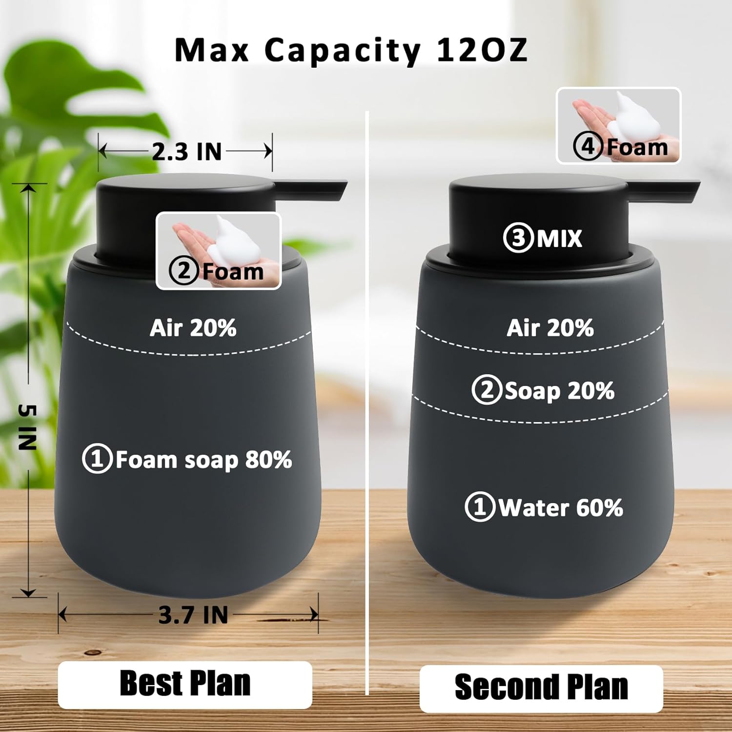 Soap Foaming Dispenser Ceramic with Easy-to-Press Pump Hand Foam Dispenser for Shampoo Bathroom Kitchen 12 oz