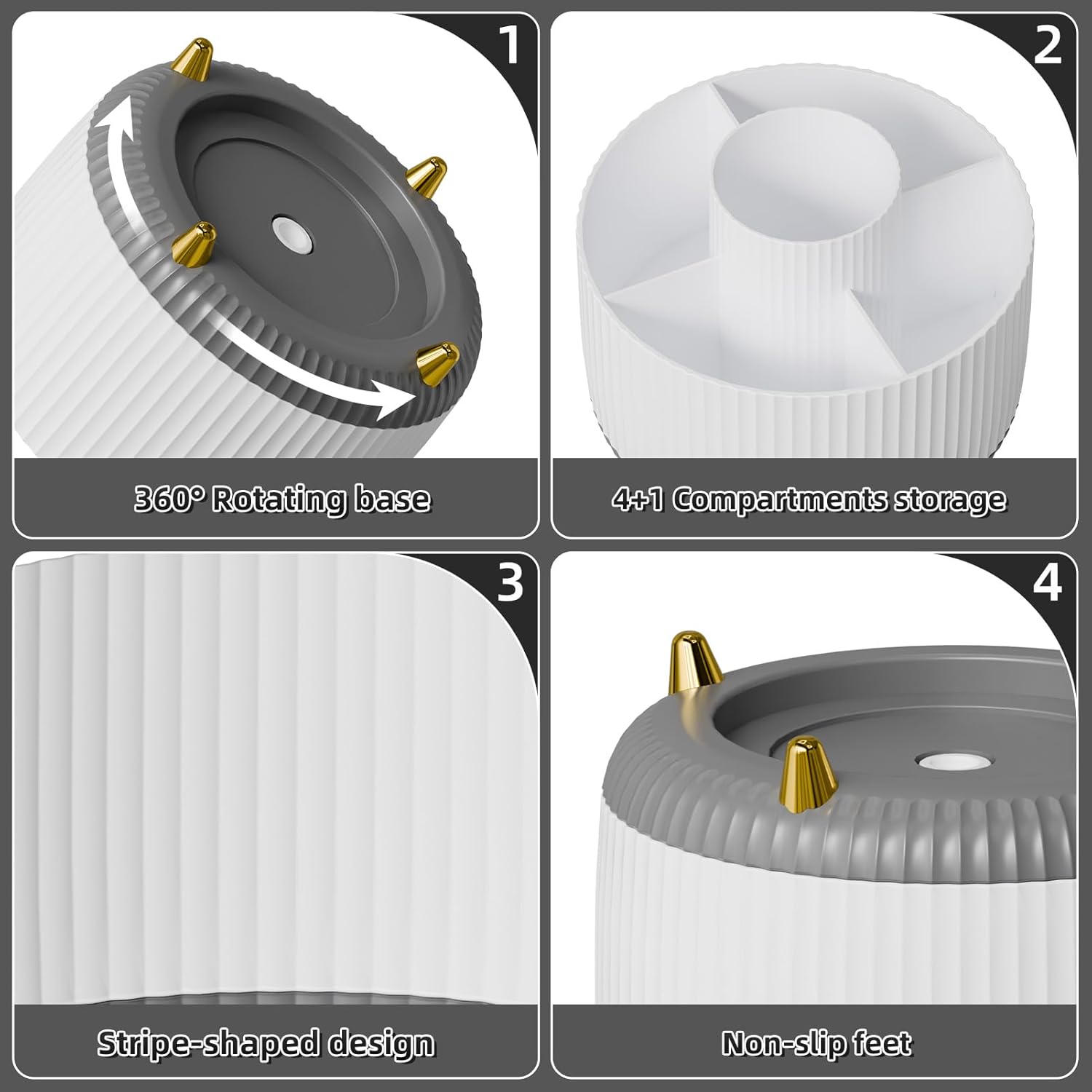 Marbrasse Desk Organizer, 360-Degree Rotating Pen Holder, Desk Organizers and Accessories with 5 Compartments Pencil Holder, Art Supply Storage Box Caddy for Office, Home (White+Grey)