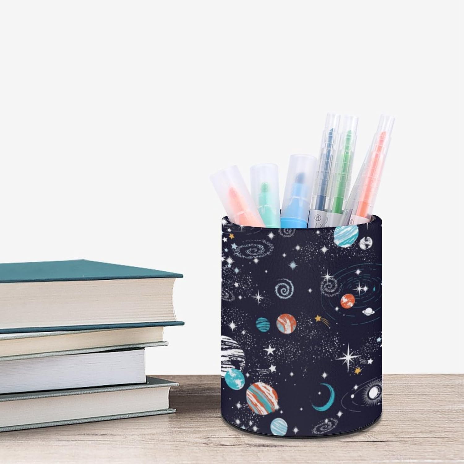 Galaxy Space Planets Pen Holder Pencil Organizer Cute Pencil Cup Desk Decor Makeup Brush Holder PU Multifunctional Office Suppliesfor Home Classroom School