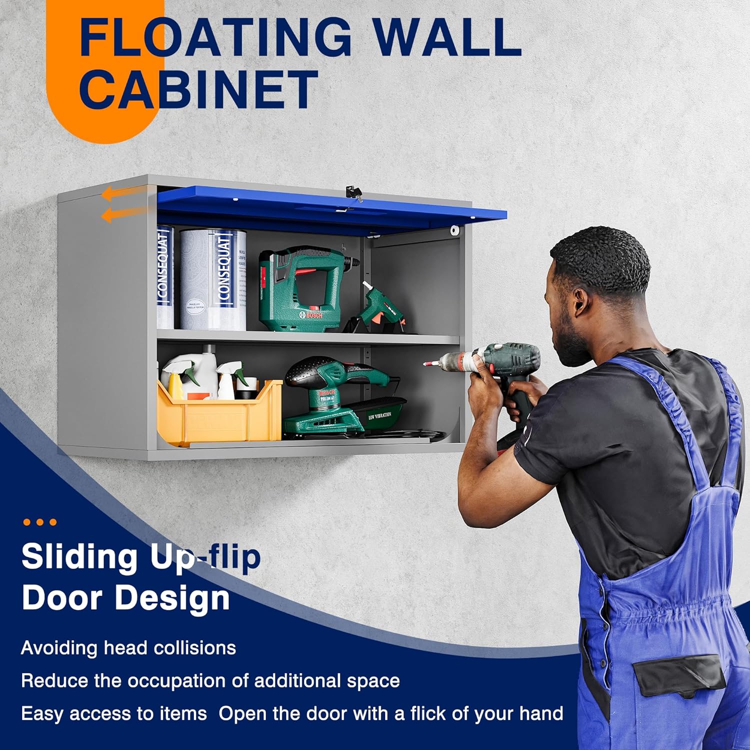 - 『SLIDING Up-Flip DOOR』 Yizosh wall cabinet features a special opening and closing door design. Sliding Up-Flip door allows you to open the door easily and frees up your hands to access the item in the cabinet more conveniently. The door can slide into the cabinet, which can prevent accidental head-banging