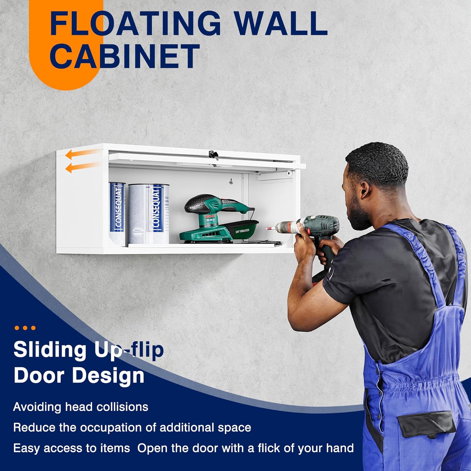 Yizosh Metal Wall Cabinet with Doors, Wall Mounted Storage Cabinet - Floating Tool Cabinet for Kitchen, Basement, Warehouse (White, 13.7" H)