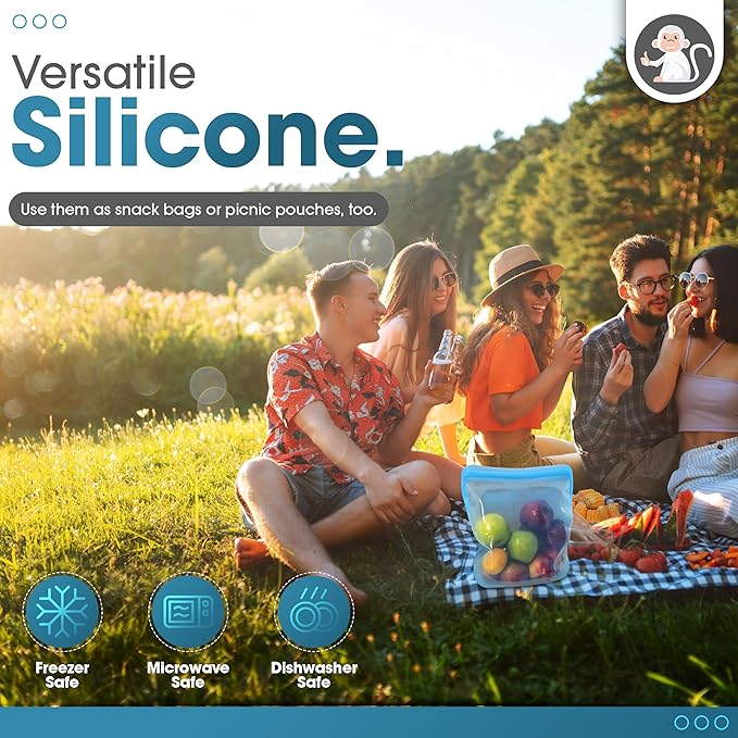 - VERSATILE SILICONE MATERIAL - Our food grade freezer storage containers are great for freezing, microwaving, or even putting them in the dishwasher. Use them as snack bags or picnic pouches, too.