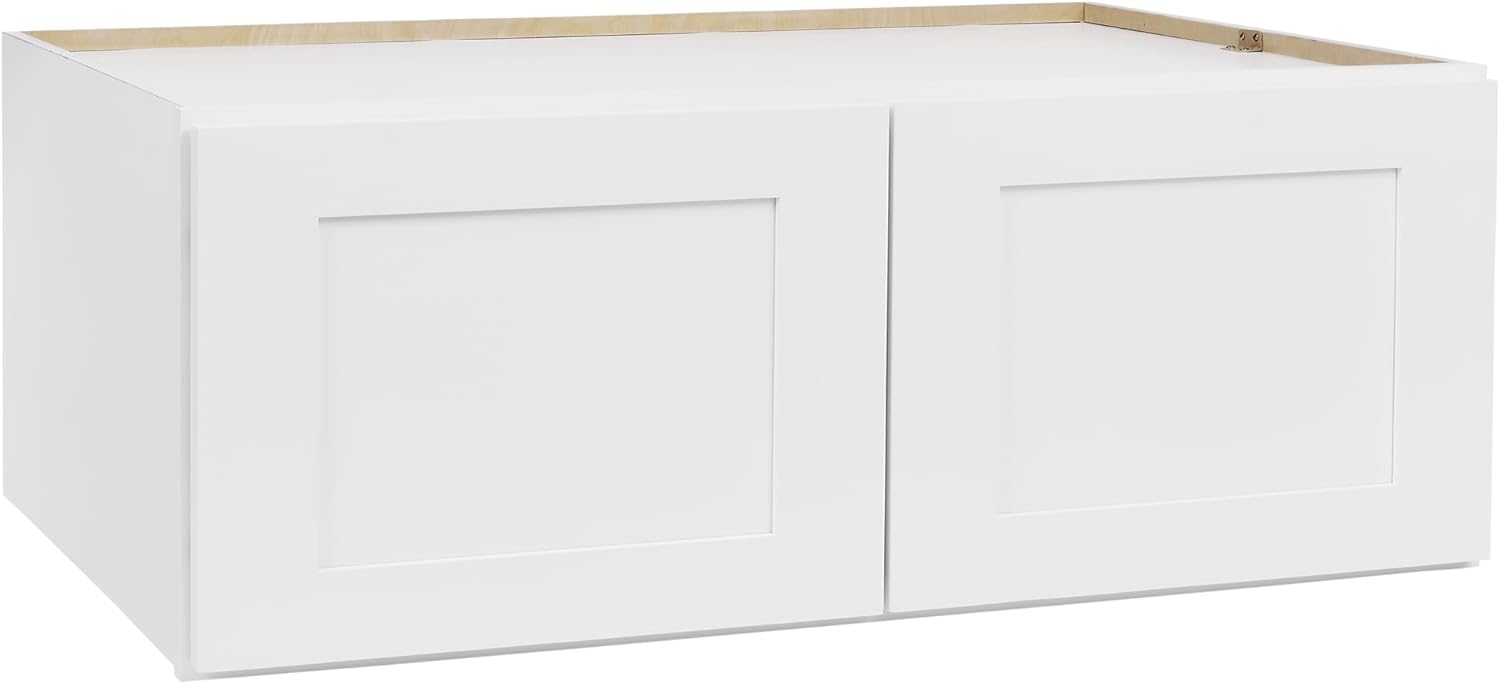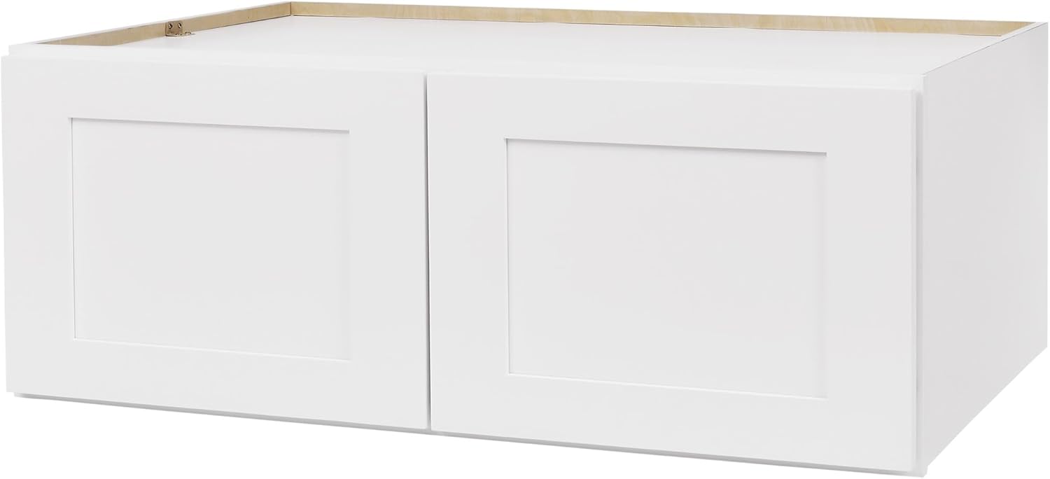 White Shaker Wall Cabinet - Ready to Assemble, Perfect for Kitchen, Laundry, and Bathroom Storage - 30”W x 15”H x 12”D