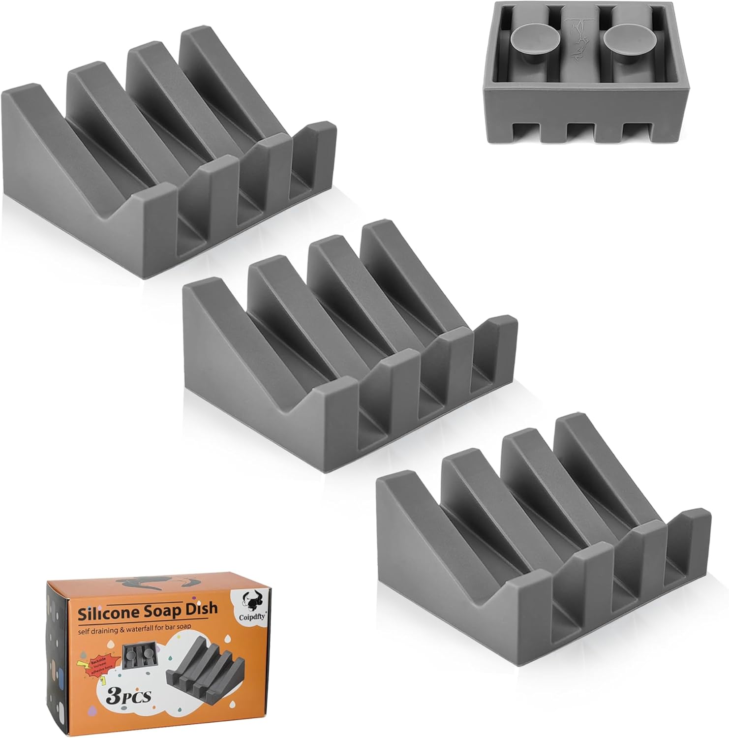 Self Draining Soap Dish,Silicone Suction Cup Soap Holder, Bathroom Soap Dish for Bar Soap,Can Extend Soap Life,Bathroom, Bath Tub, Kitchen Sink(3, Grey)