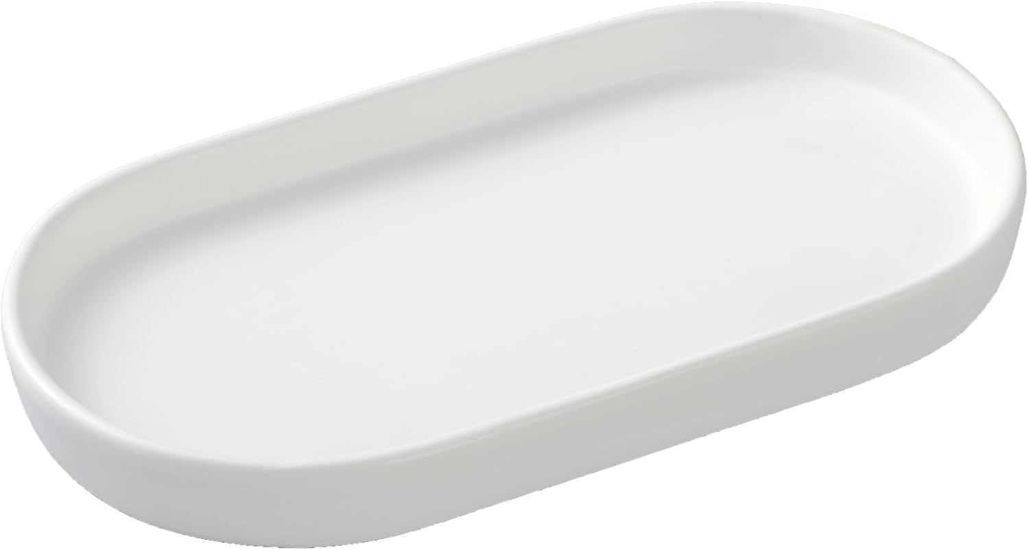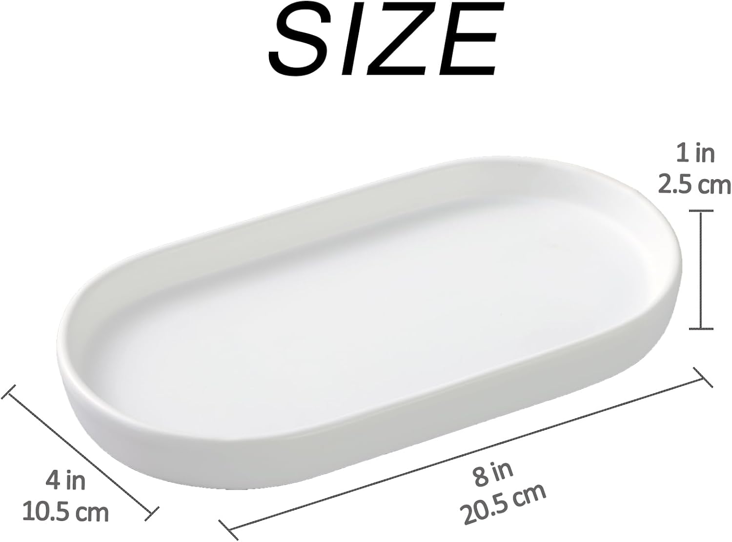 White Round Soap Dispenser Tray - 8'' Ceramic Vanity Tray for Bathroom Decorative, Jewelry Ring Dish, Comestic Holder, Kitchen Sink Countertop Organizer Plate