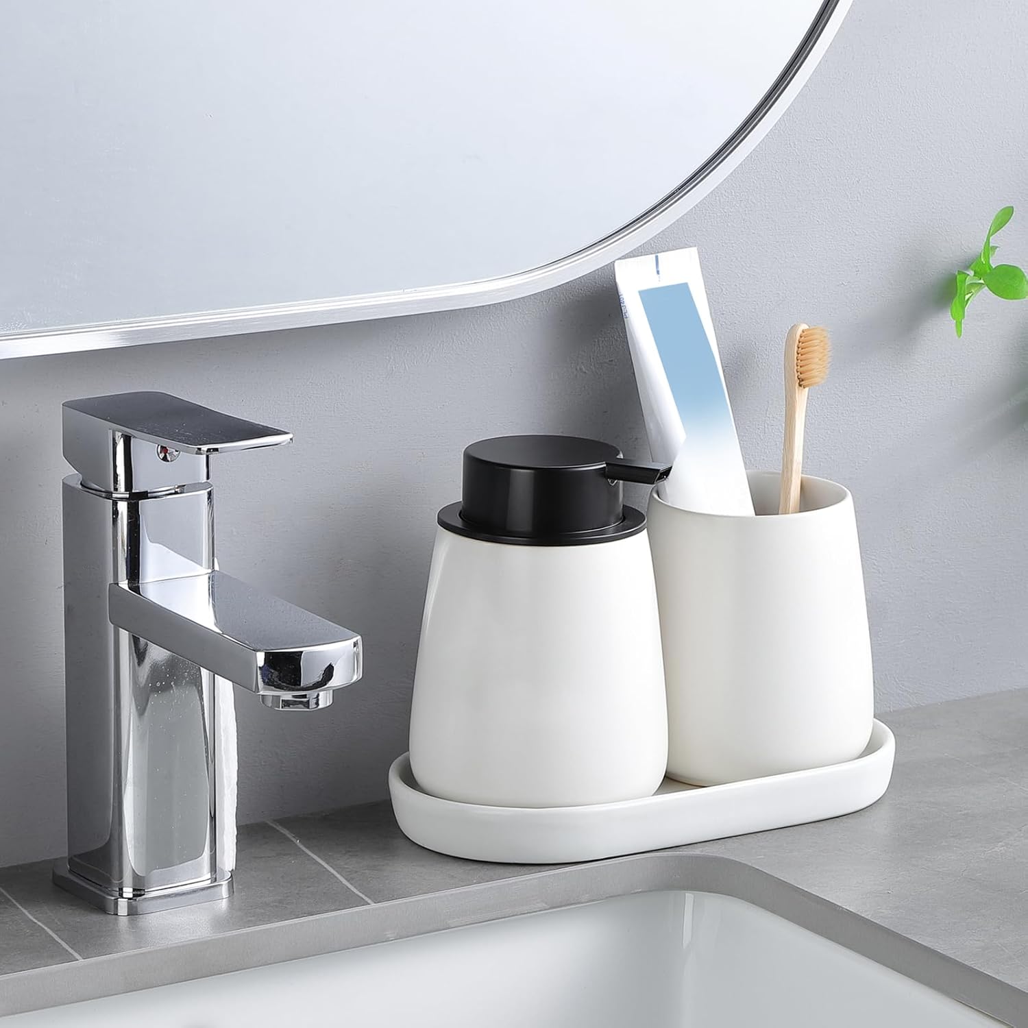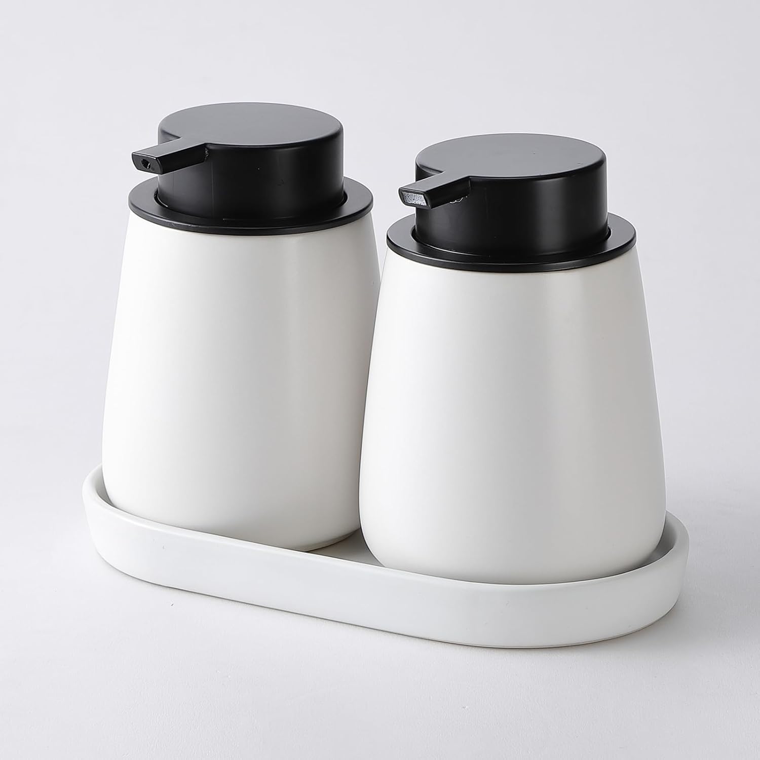 - 【Material】Eyrozia Soap Dispenser Tray made of high quality ceramic, lead-free and non-toxic, safe and environmentally friendly, durable. The smooth surface is easy to clean, and the rounded angles with raised walls provide both elegance and protection against spills.