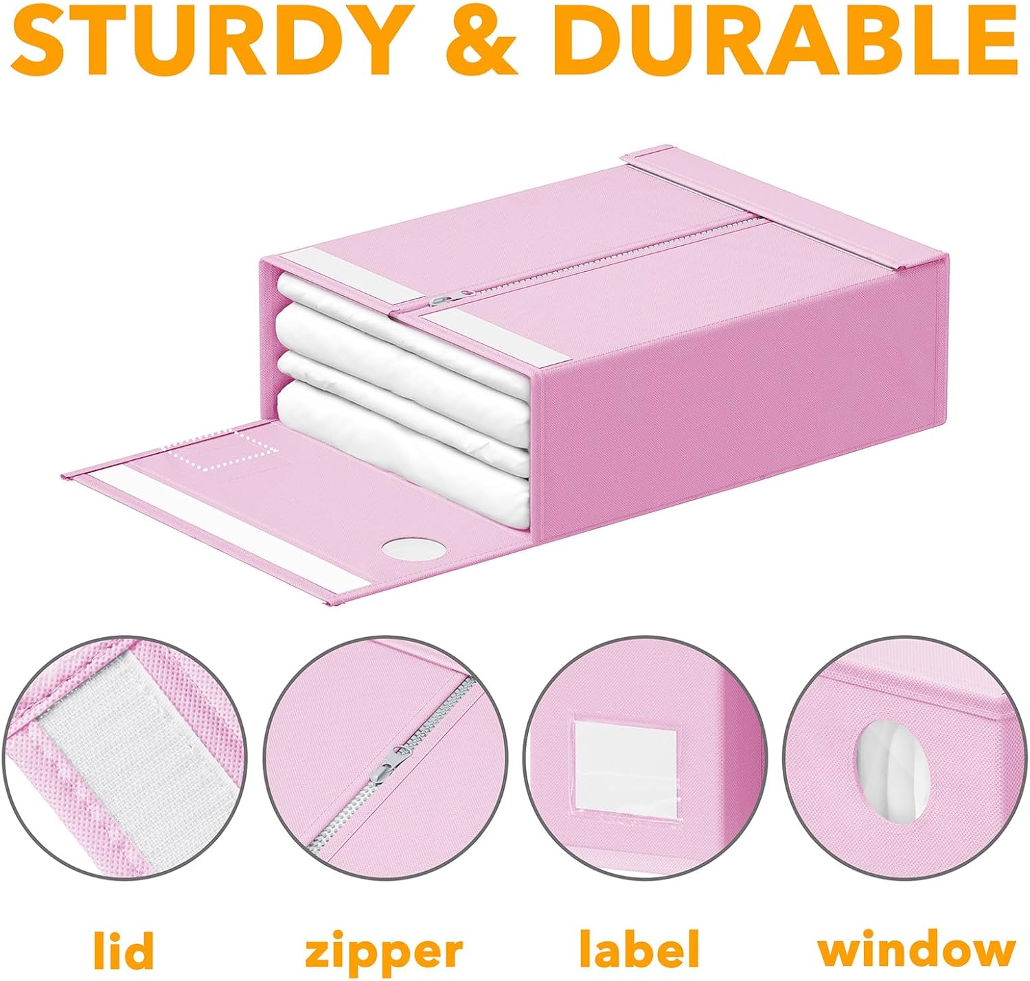 SpaceAid 4 Pack Bed Sheet Organizers and Storage, Foldable Sheet Organizer for Linen Closet, Sheets Set Folder Keeper with Window XL (Queen & King Size) Bedding Container (Pink, 4 Pack)