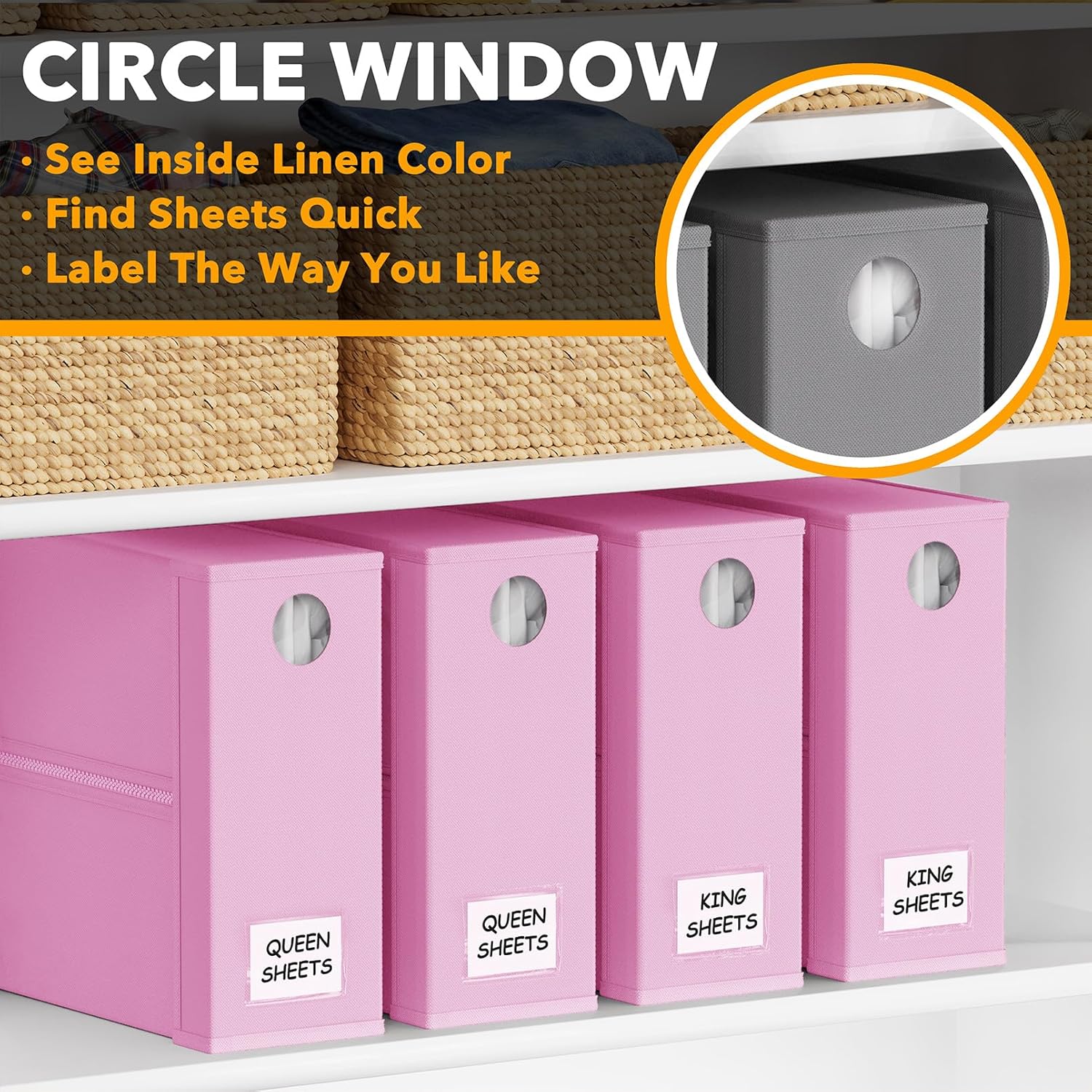 - PINK SHEET ORGANIZERS 4 PACK - Make your linen closet organized and beautiful with this foldable bed sheet fabric organizer; Each Storage Organizer SIZE: 5"W x 15"D x 12.8"H