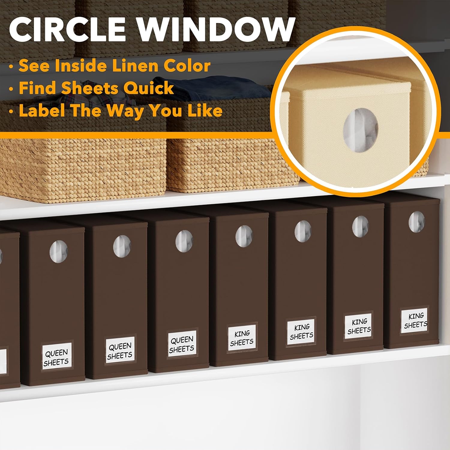 - BROWN SHEET ORGANIZERS 8 PACK - Make your linen closet organized and beautiful with this foldable bed sheet fabric organizer; Each Storage Organizer SIZE: 5"W x 15"D x 12.8"H