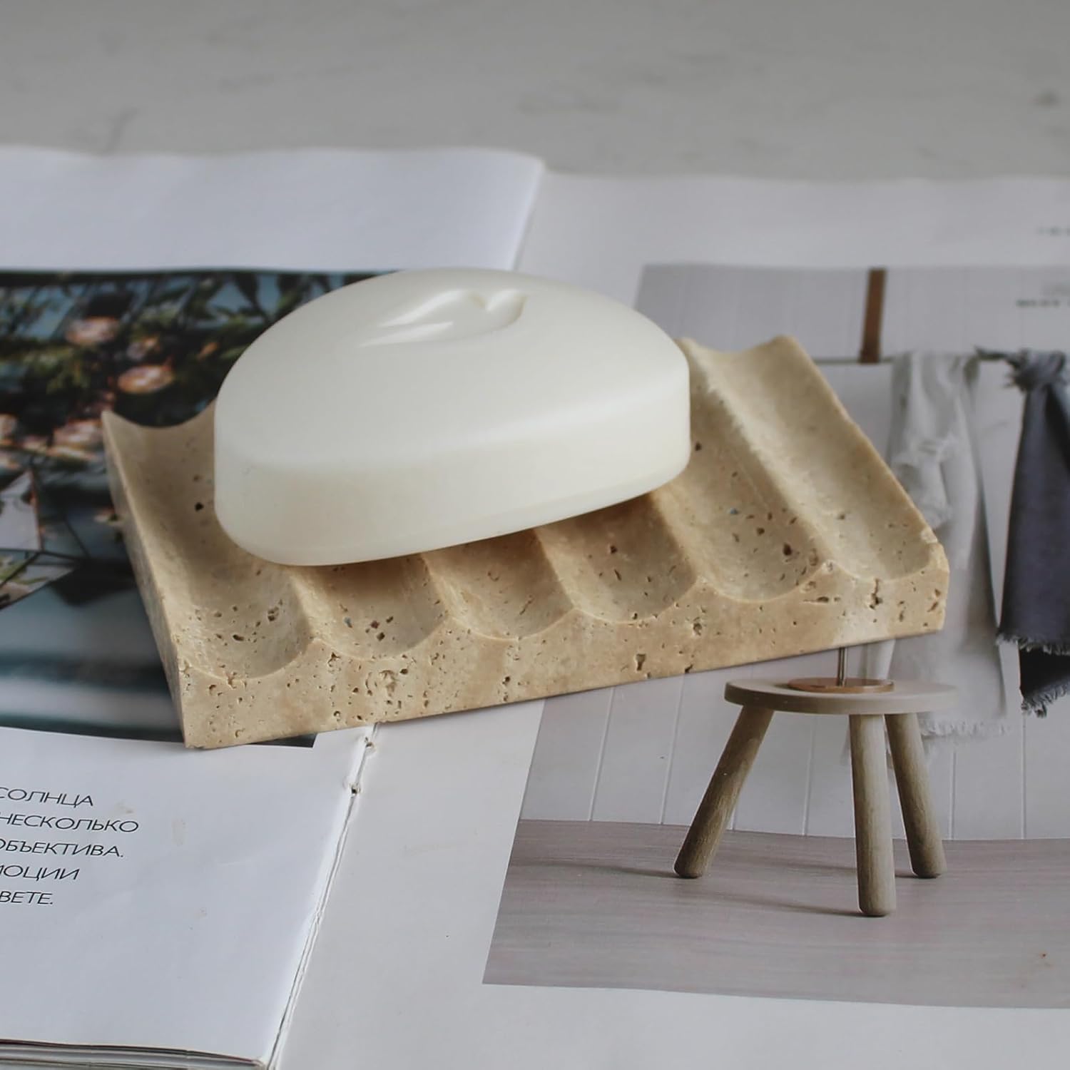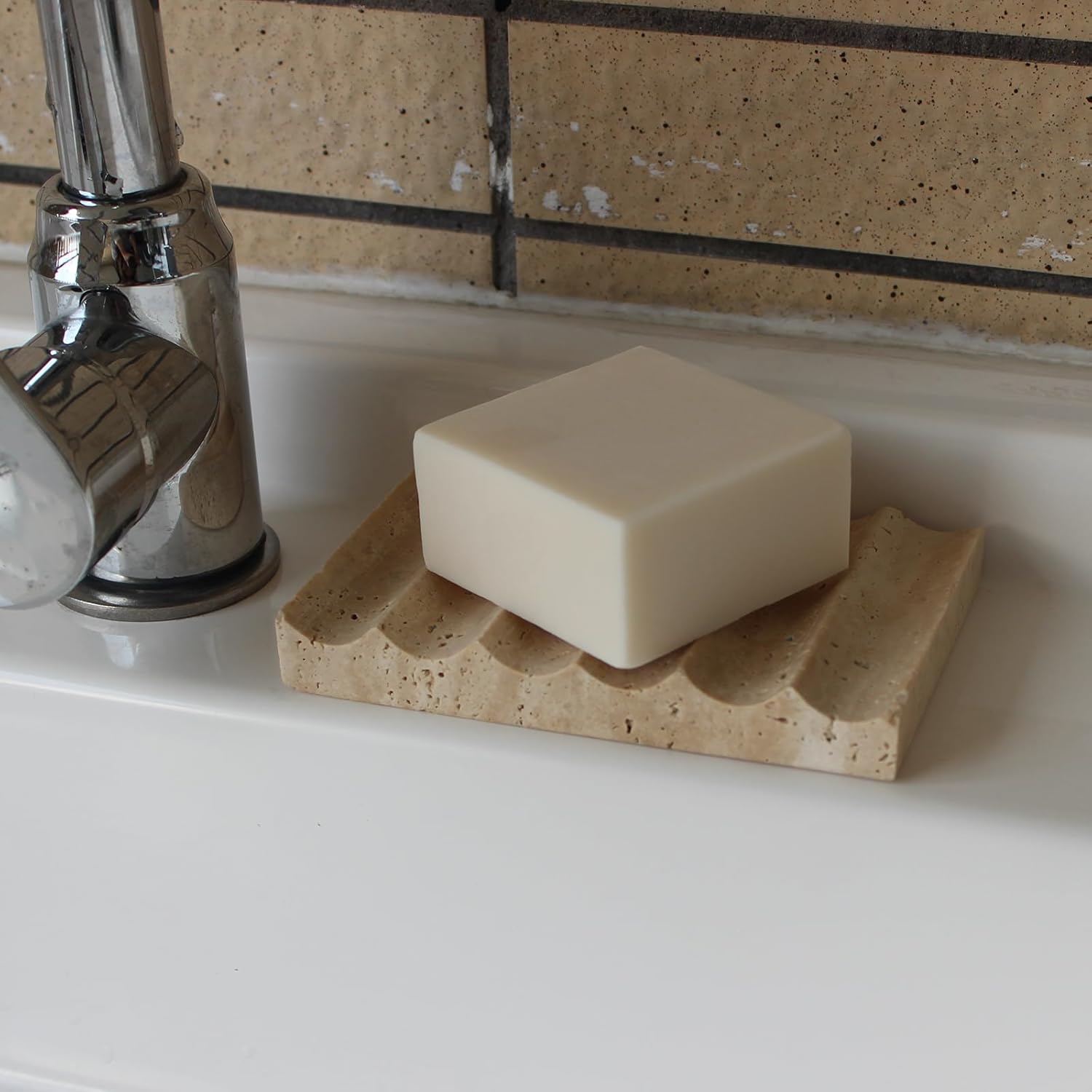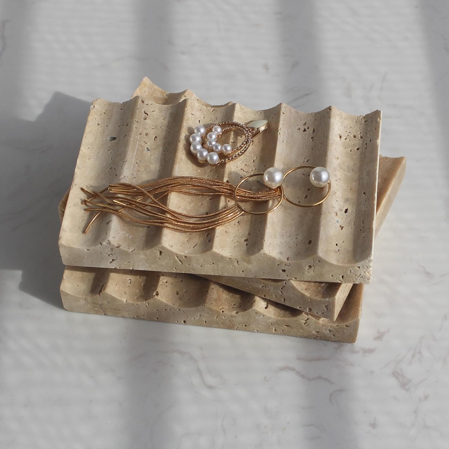 Luxury Beige Travertine Soap Dish, Jewelry Ring Dish, Sponge Holder for Bathroom Kitchen