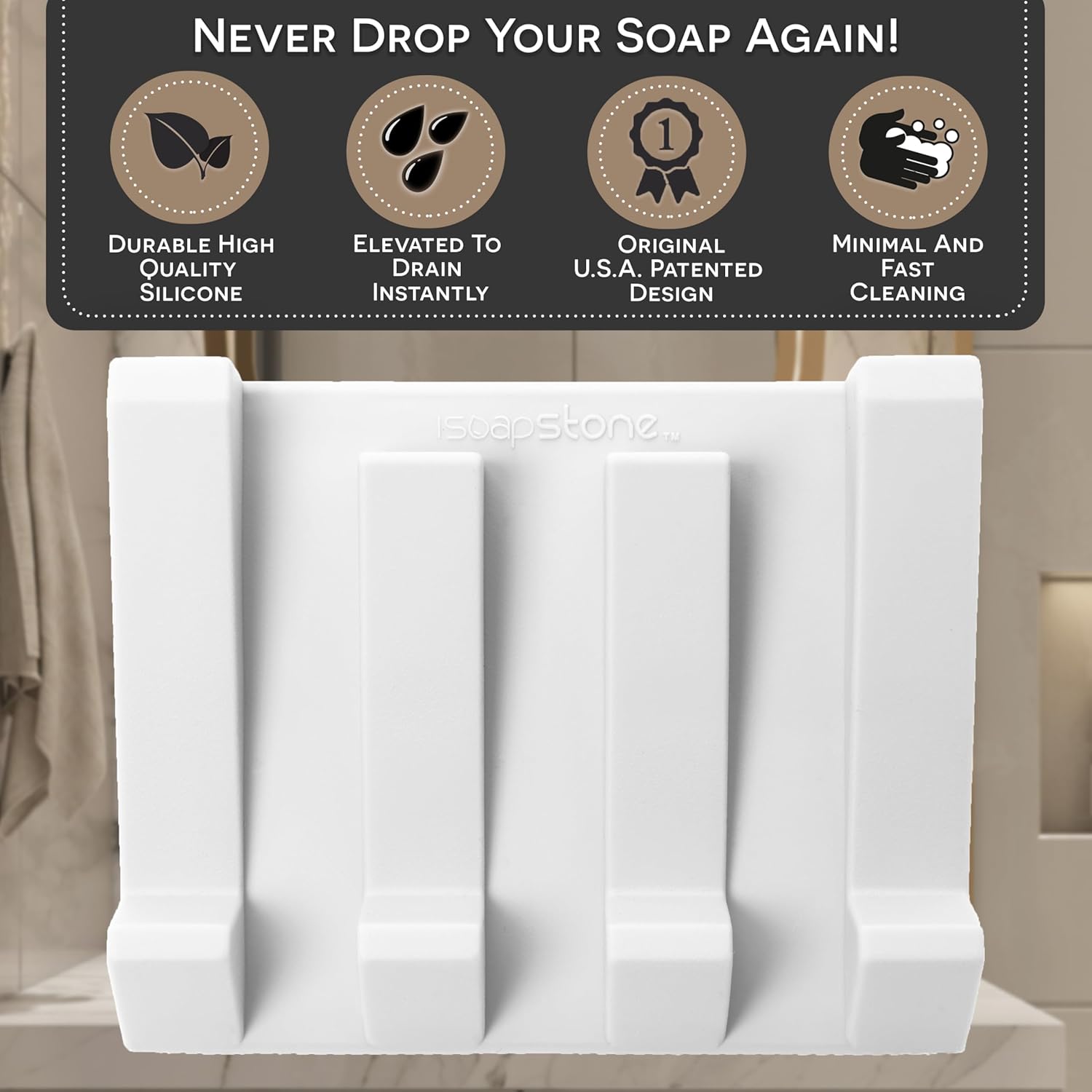 - USA Patented Elevated Design - The original USA patented self draining waterfall design that will dry soap bars fast. No more mushy soap sitting in a pool of water. Designed with several drain spouts for water to flow out quickly! These soap dishes come in a bundle as a 2-pack pure white!