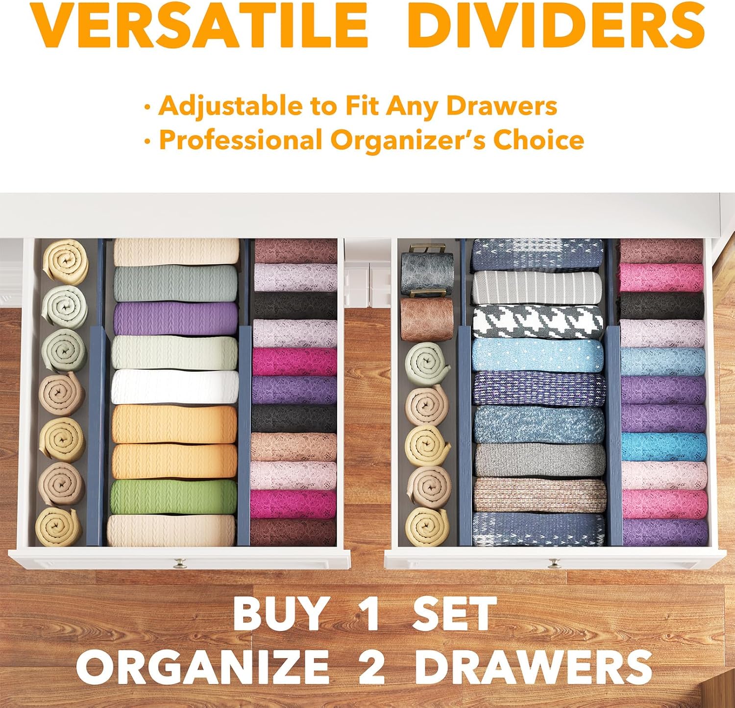 - Drawer Dividers That Stay in Place: Strong spring-loaded design makes them sturdy dividers, with non-slip rubber pads in the end, keeping it stay put all the time and protect your drawers from scratches