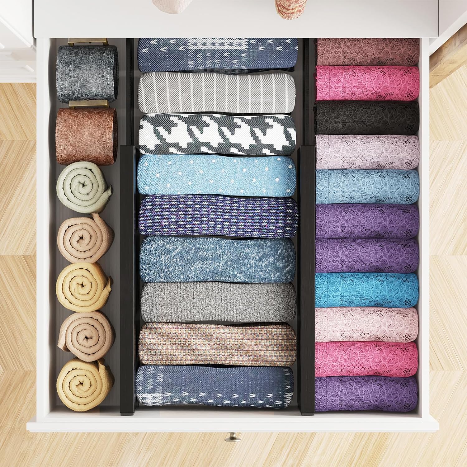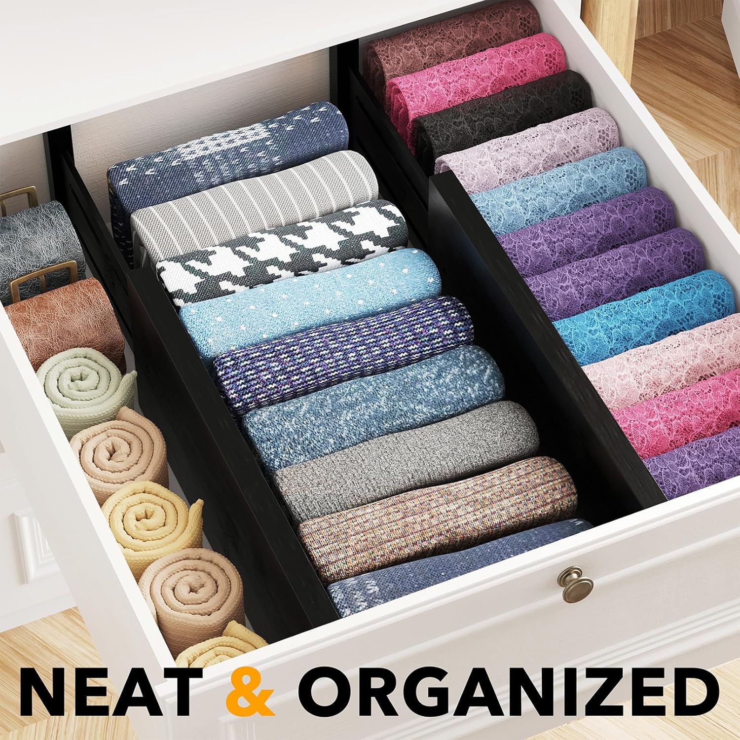 - 4 Black Drawer Dividers: Customize your dresser drawer with our bamboo dresser organizers; You can organize your clothes dresser with this 4.65 inches high drawer dividers