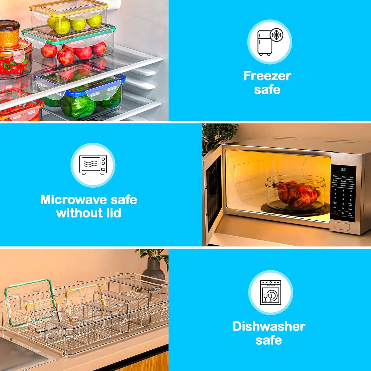 - Material Feature : Dishwasher Safe, Freezer Safe, Microwave Safe, Reusable