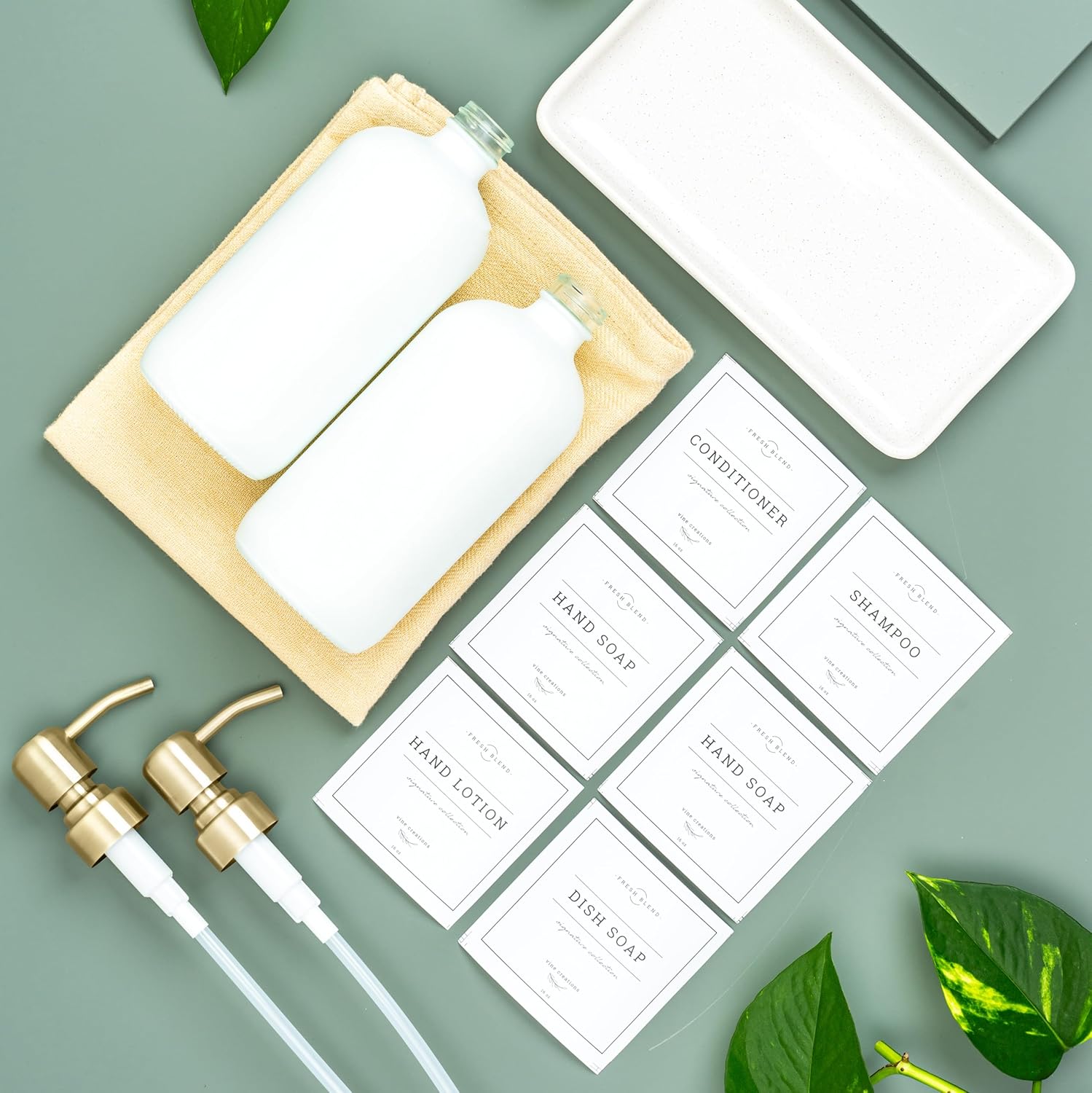 - PREMIUM WATERPROOF LABELS - Six high-end labels, featuring two for hand soap, alongside dish soap, shampoo, conditioner, and hand lotion. Crafted for daily use, these premium 3" x 3" labels add a touch of elegance.