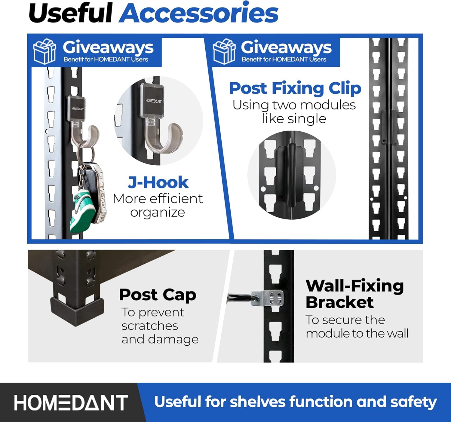 - EASY TO ASSEMBLE - No more hiring someone to assemble your shelves for you. With our product, you can assemble it yourself in just 10 minutes without any bolts or nuts. Simply slide and fix the frame into the post hole by lightly pressing it. It's so easy, you can even do it with your bare hands! And if you do need a tool, a rubber hammer is all you need (not included).