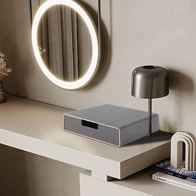 Stackable Organizer Drawer PU Leather Classic Handmade,Organize Home Office Desk Accessories and Sort Letter-Size Paper/a4 Document,Desktop Caddy with Drawers Storage,13.1x10x3.7inches,Grey