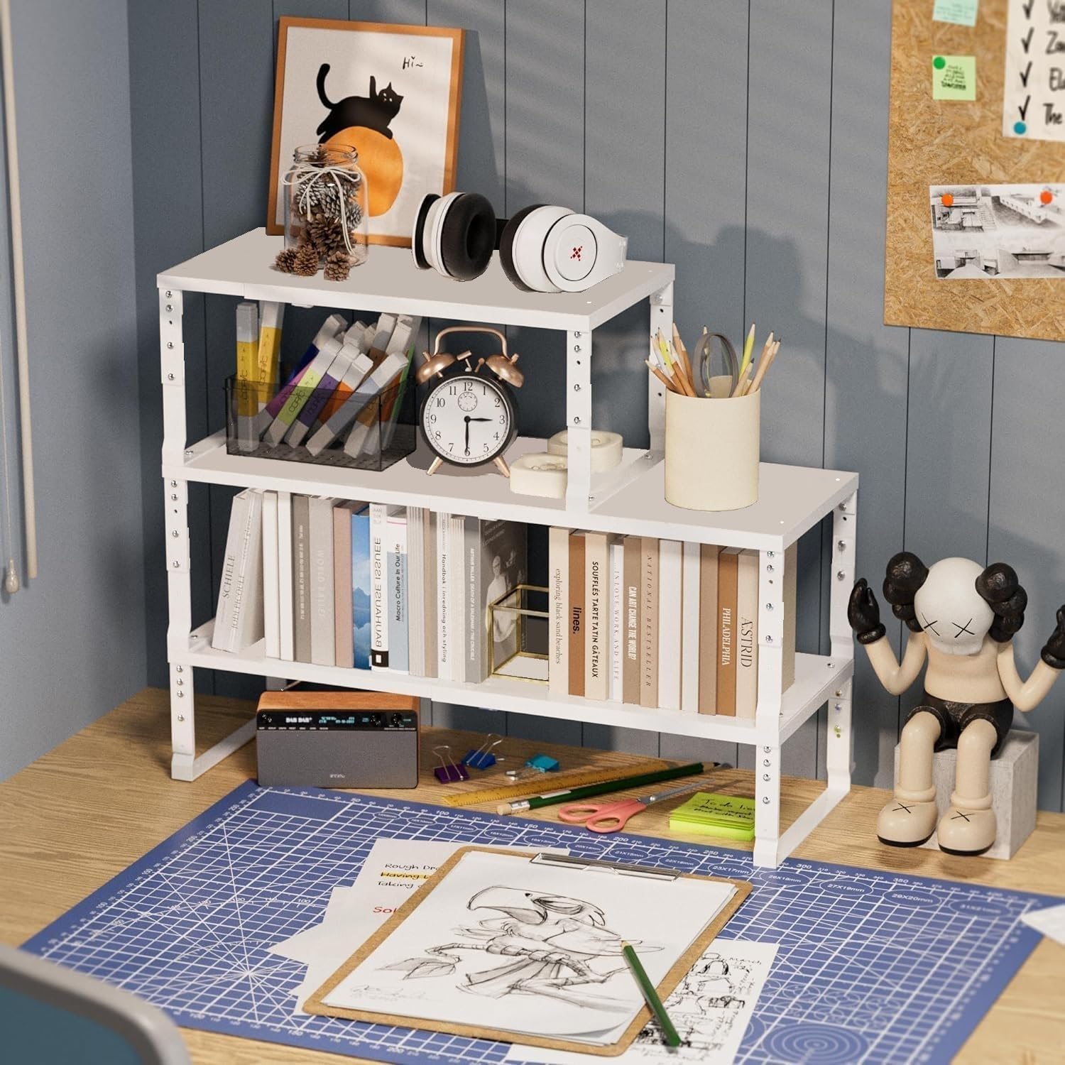 Expandable Spice Rack Organizion for Kitchen Cabinet, Seasoning,Bathroom Organizer Display Shelf, Stackable Multi-Purpose Shelves.Easy-to-Install(1Pack/White,Large