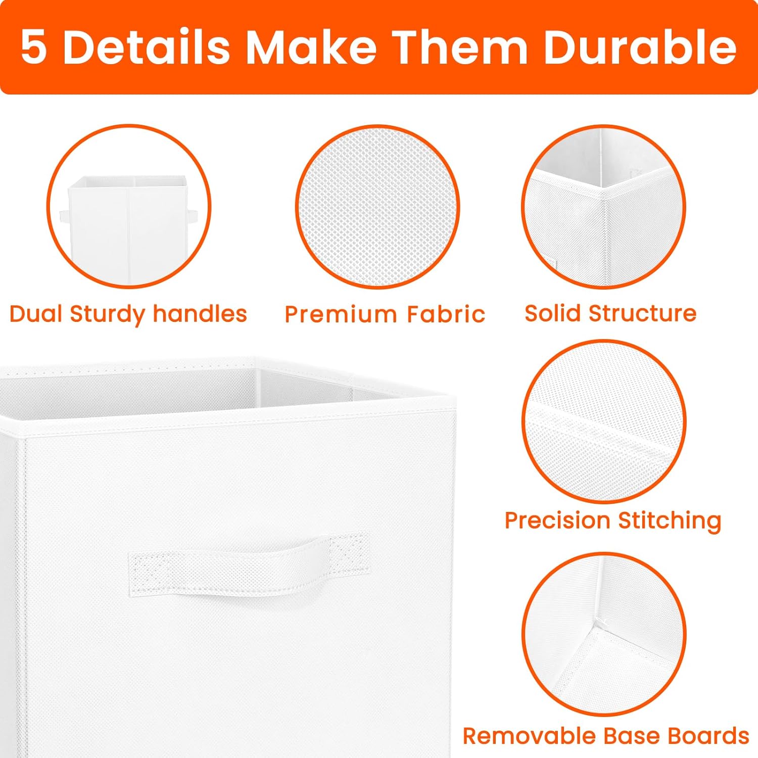 - 【STURDY DESIGN】Our sturdy storage cubes will indeed surprise you with their quality, durability, and style. The thick boards make these fabric storage bins robust enough for daily use, and the reinforced handles on both sides ensure quick and easy carrying. DIMENSIONS: 10.75(W) x 10.75(D) x 11(H) inches.