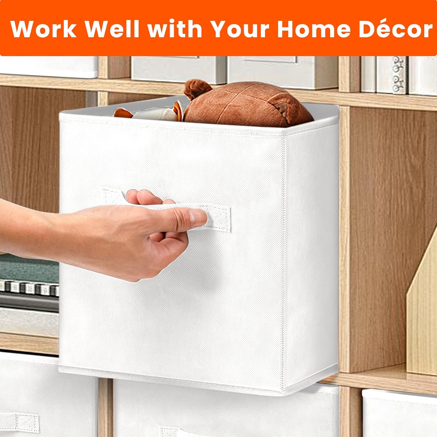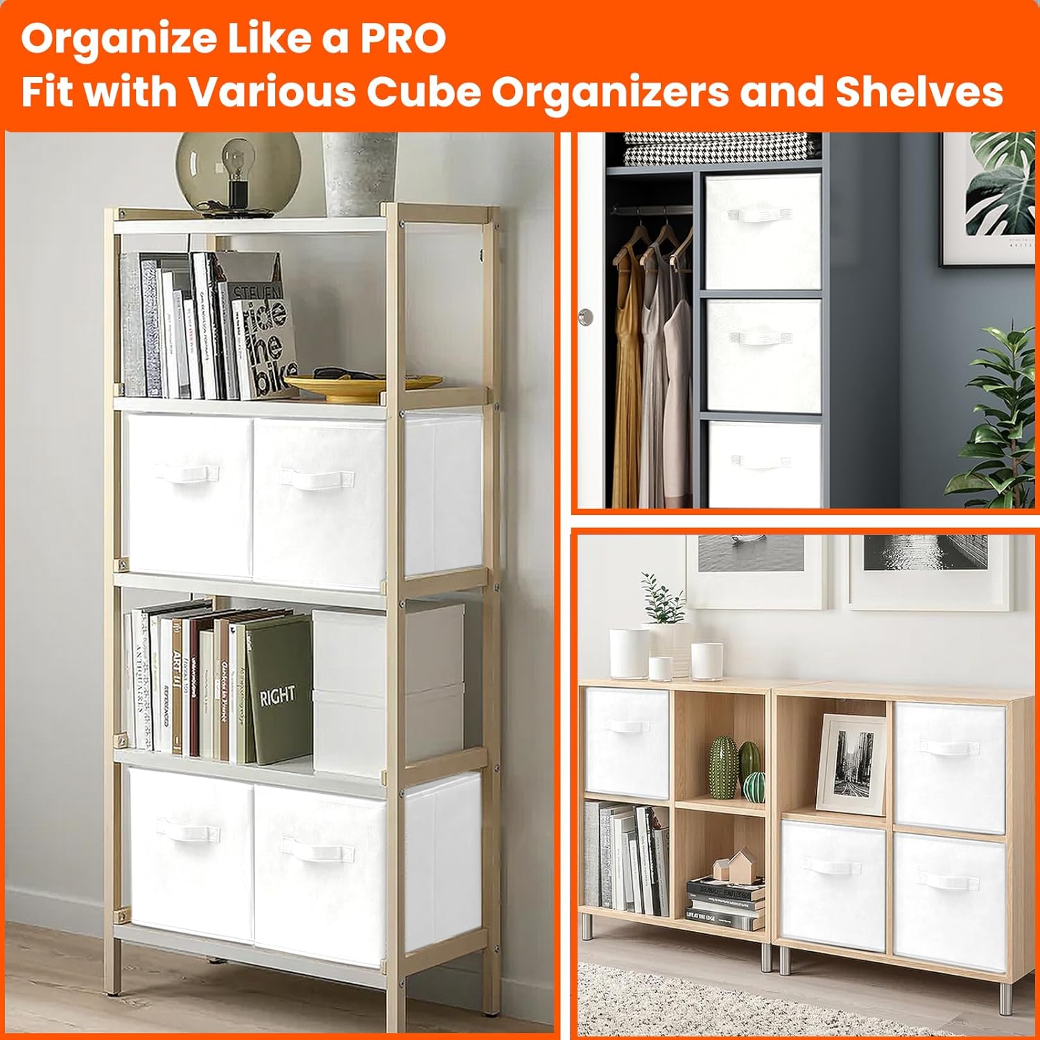- 【MULTI-USE】Measuring 10.75x10.75x11 inches, our 10 pack white clothes storage bins could fit perfectly with most of cube organizer, shelf, closet. Whether you're in the bedroom, playroom, or laundry room, these bins offer versatile organization and storage solutions for items such as clothes, linens, toys, books, and more.