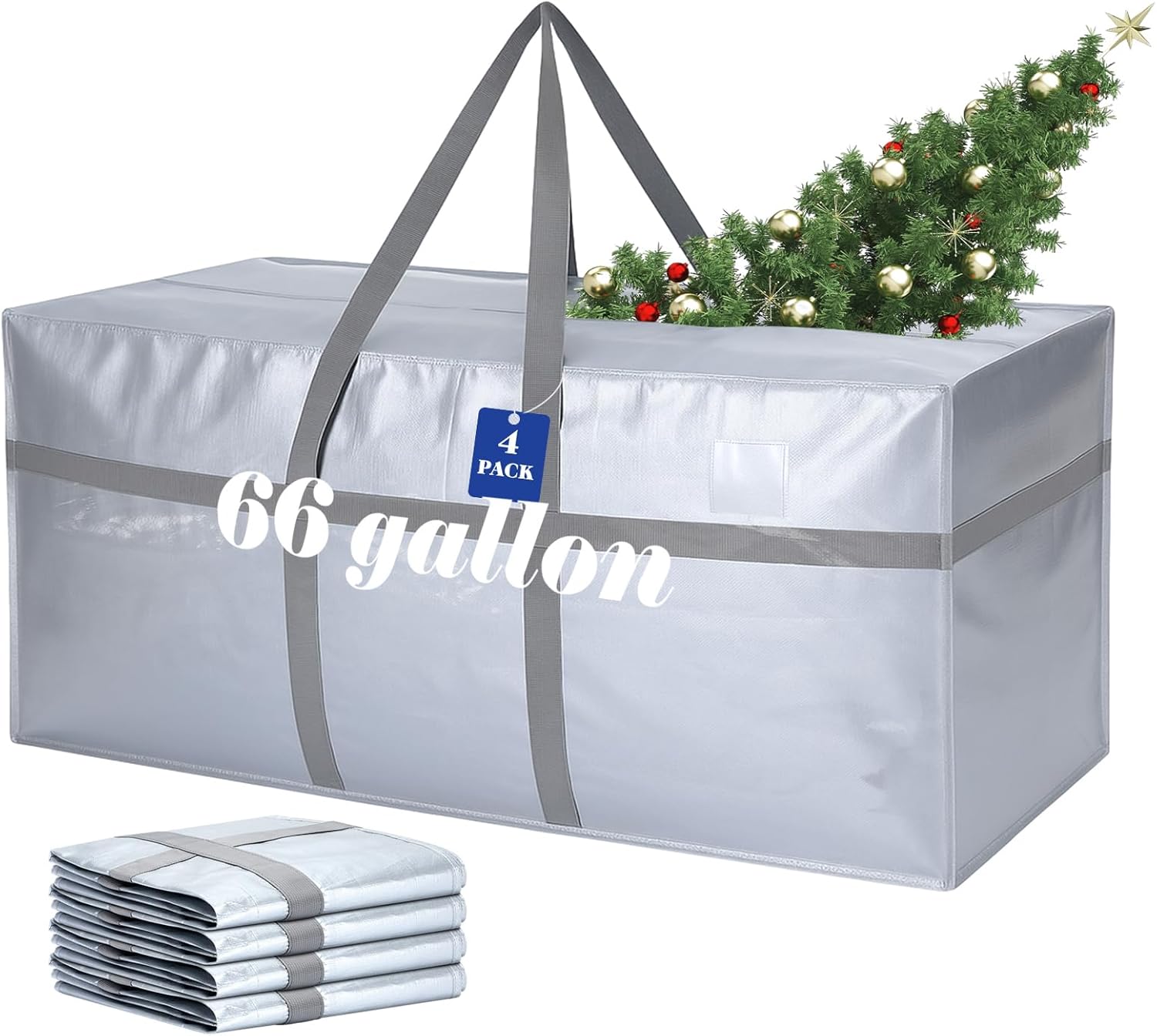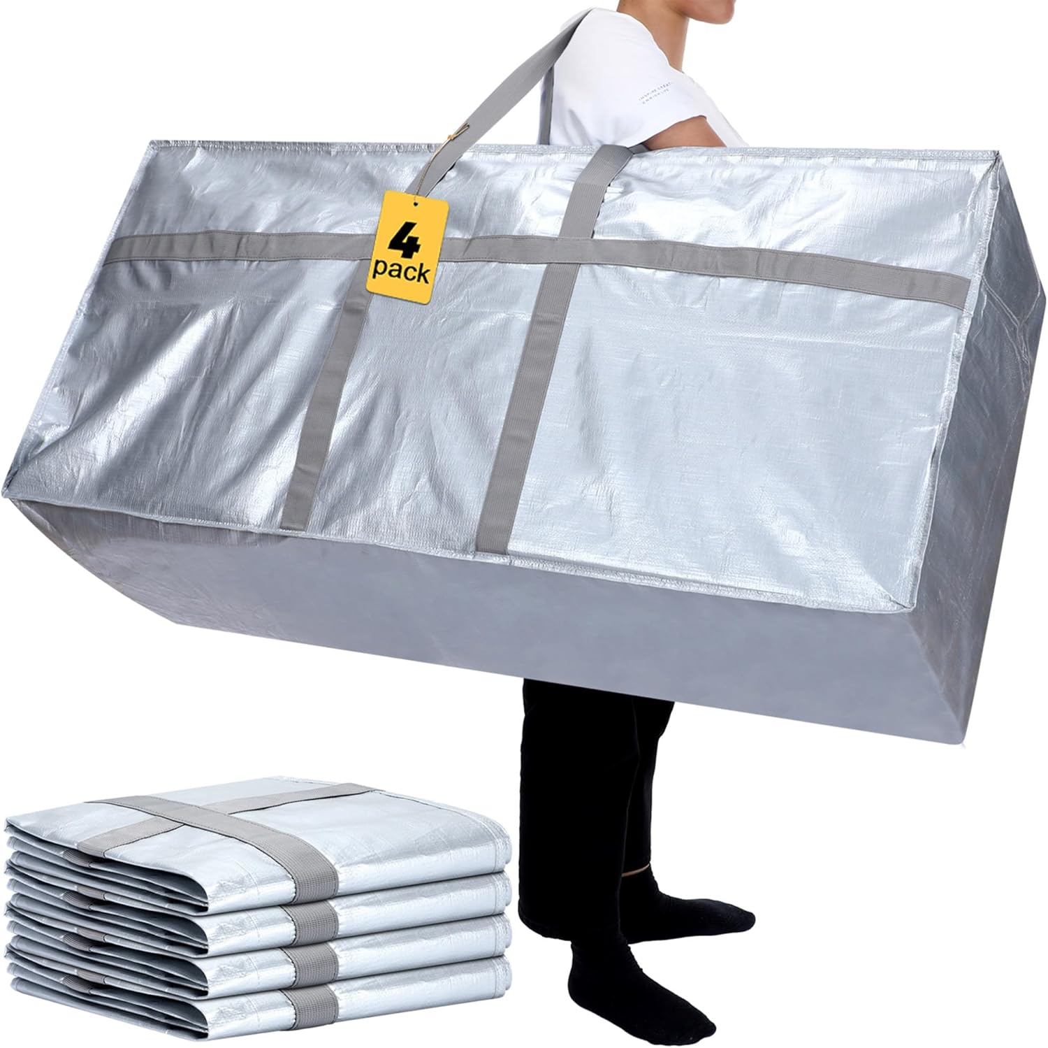 4 Pcs 66 Gallon Large Moving Bags with Zipper and Handles Foldable Storage Duffle Bags Heavy Duty Extra Large Totes for College Dorm Travel Clothes Blankets Bedding Moving (Silver)