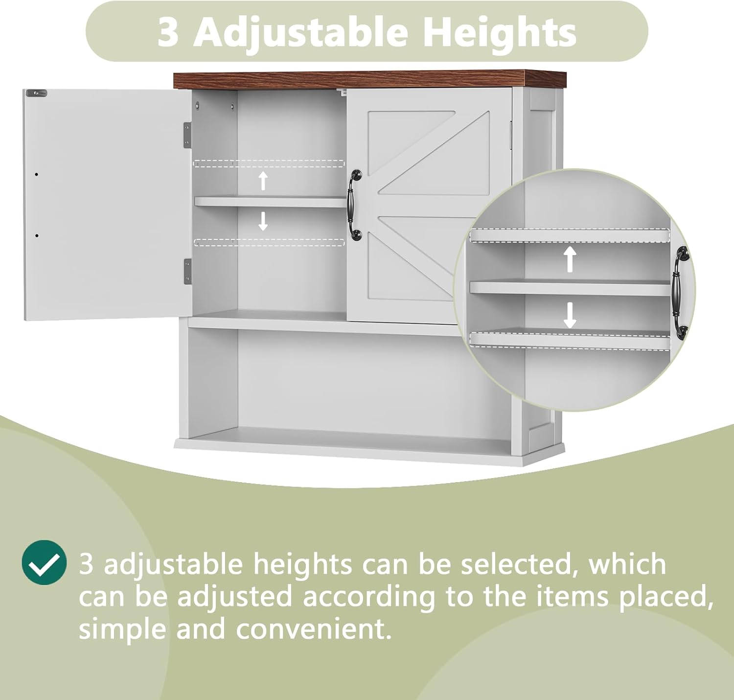 Smuxee Farmhouse Wall Mounted Cabinet with Adjustable Shelf, for Bathroom, Living Room, Laundry Room