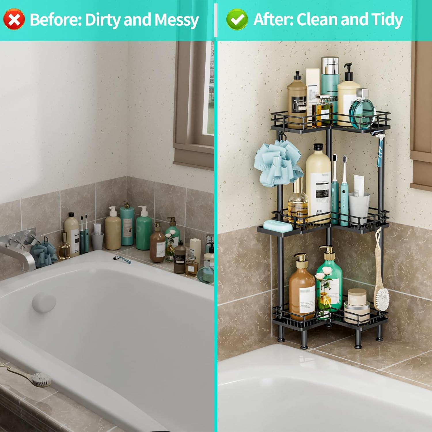 - [Easy Installation & Professional Service]: Our shower corner shelf is easy to install with complete accessories, and it can be done quickly in a few minutes. If you have any dissatisfaction with the shower tower caddy corner, please reach out to us
