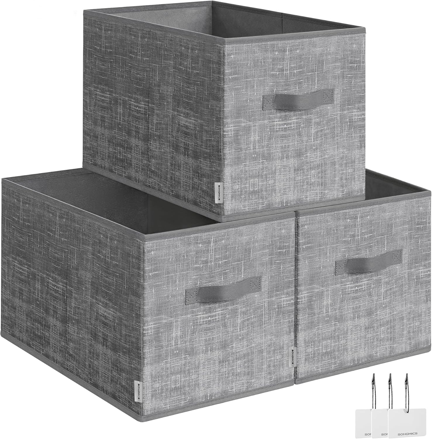SONGMICS Storage Cubes, 19.7 x 11.8 x 11.8 Inches Non-Woven Fabric Bins with Double Handles, Set of 3, Closet Organizers for Shelves, Foldable, for Clothes, Cattail Gray UROB450G01