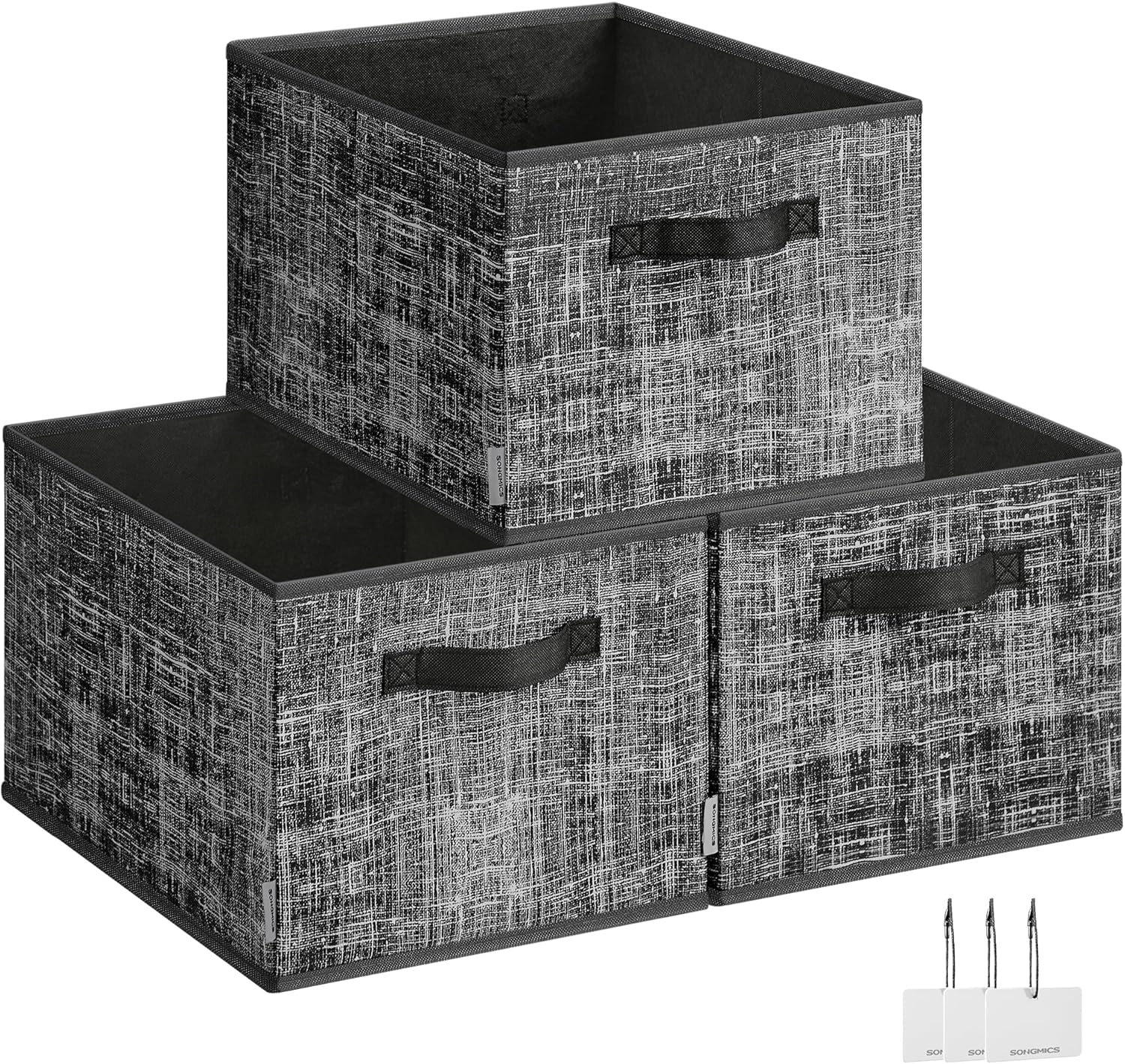 SONGMICS Storage Cubes, 15.7 x 11.8 x 9.5 Inches Non-Woven Fabric Bins with Double Handles, Set of 3, Closet Organizers for Shelves, Foldable, for Clothes, Ink Black UROB440B01