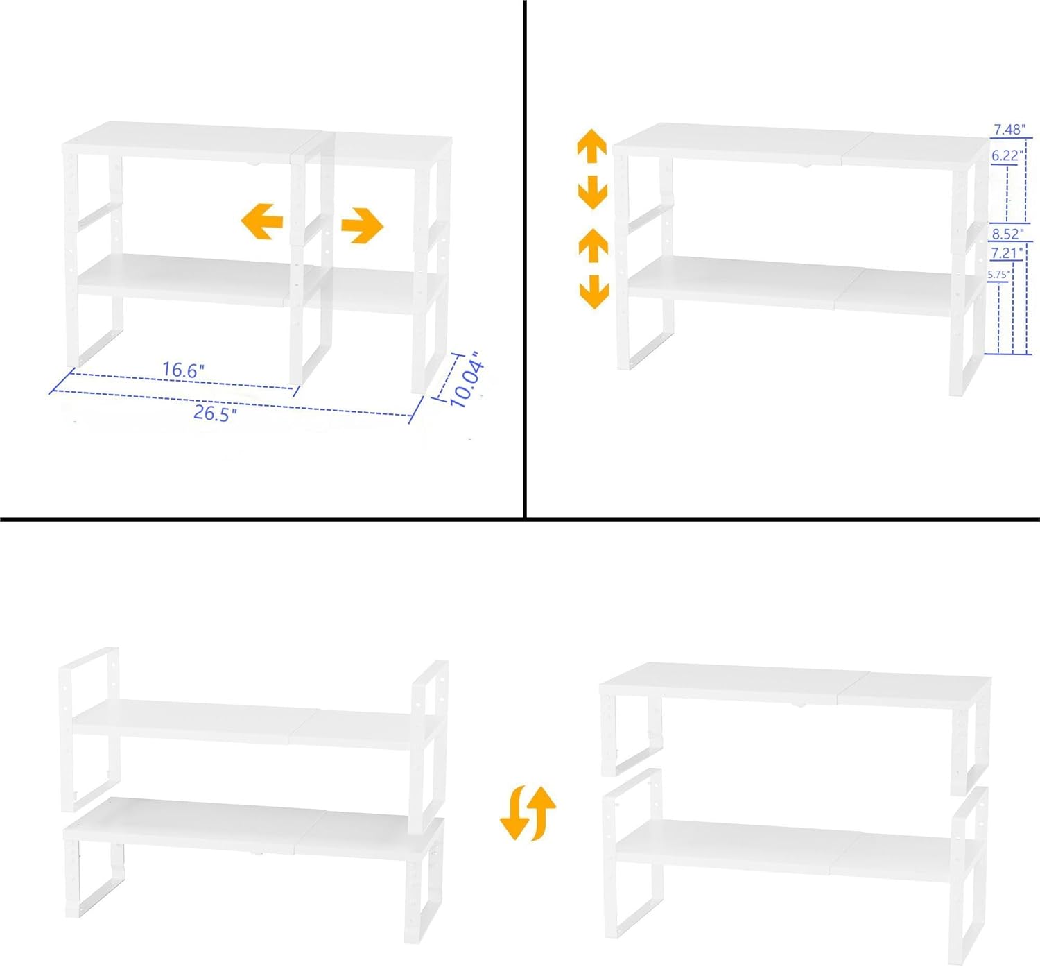 - ⭐【Expandable,Stackable】Compare with other spice rack, our products has expandable length (10.04" D x 16.6~26.5"W x 6.22~7.48"H)depending on how you want to arrange your space. You can use it alone or get more packs to stack them together to create more space.