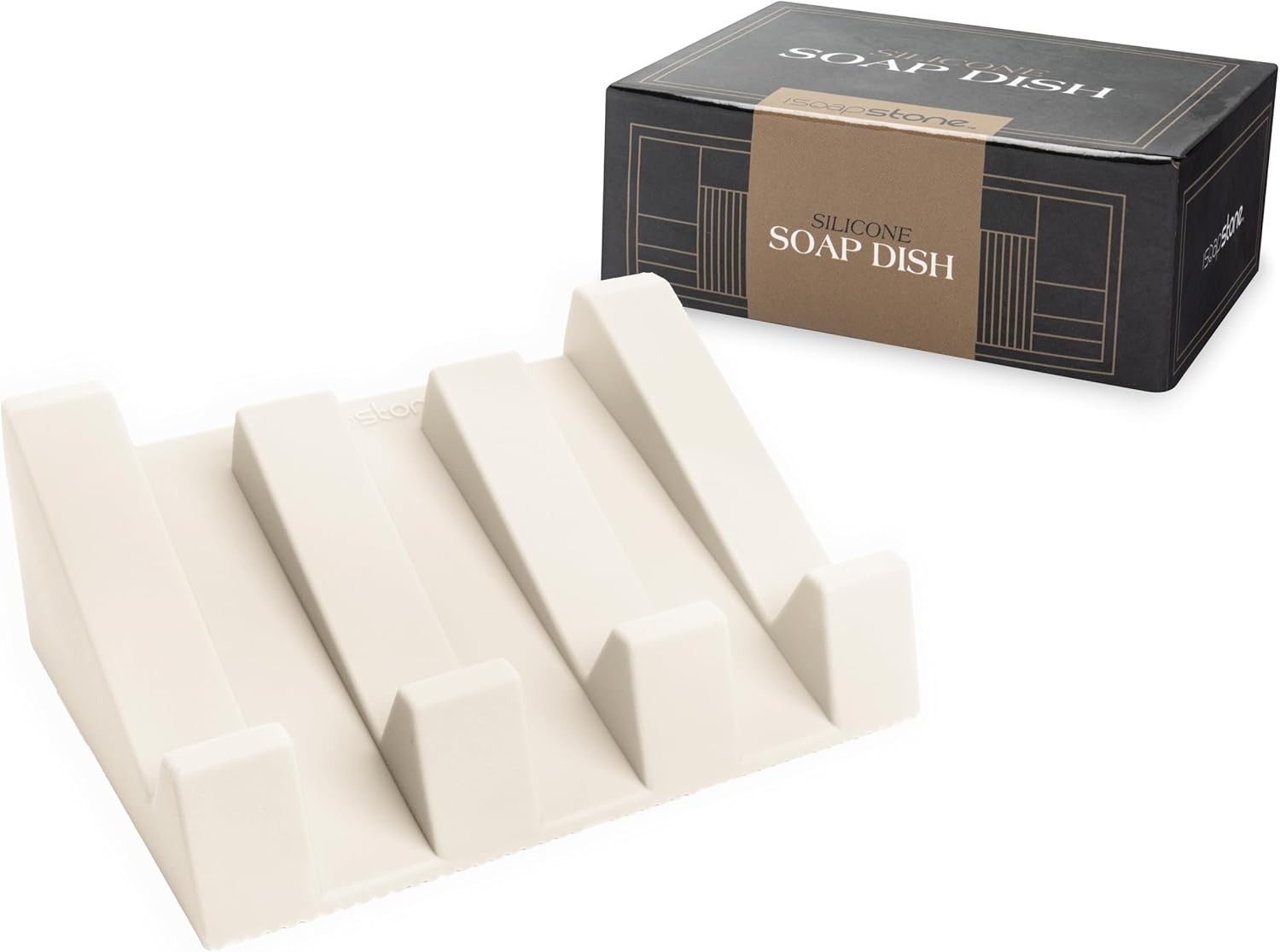 Silicone Soap Dish (USA Patented) Self Draining Bar Soap Holder for Shower Bathroom Sink, Drying Soap Dish Tray Sponge Holder Easy Cleaning Soap Saver Travel Accessories (Beige, 1)