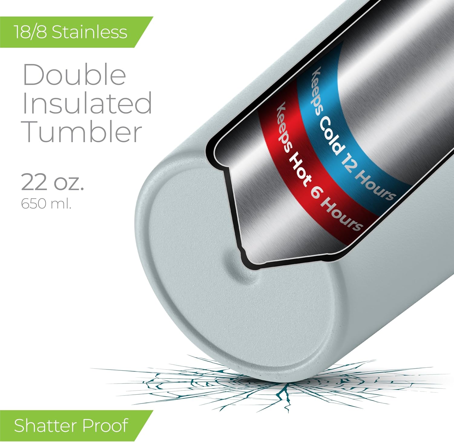- TRIPLE INSULATION TUMBLERS - Our 22oz. Tumblers are crafted with triple insulation to keep your drinks hot for up to 12 hours and cold for up to 12 hours! Say goodbye to lukewarm drinks and hello to refreshing sips all day long.