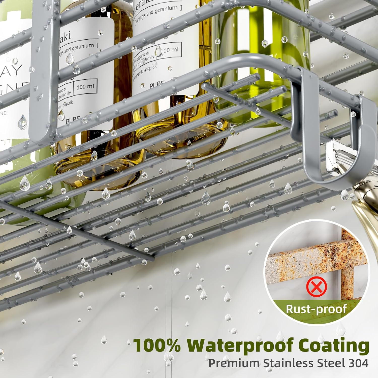 - 【Waterproof & Rustproof】:Bathroom shower caddies are made of 100% stainless steel frame with additional rust-proof coating, which is made to last for years