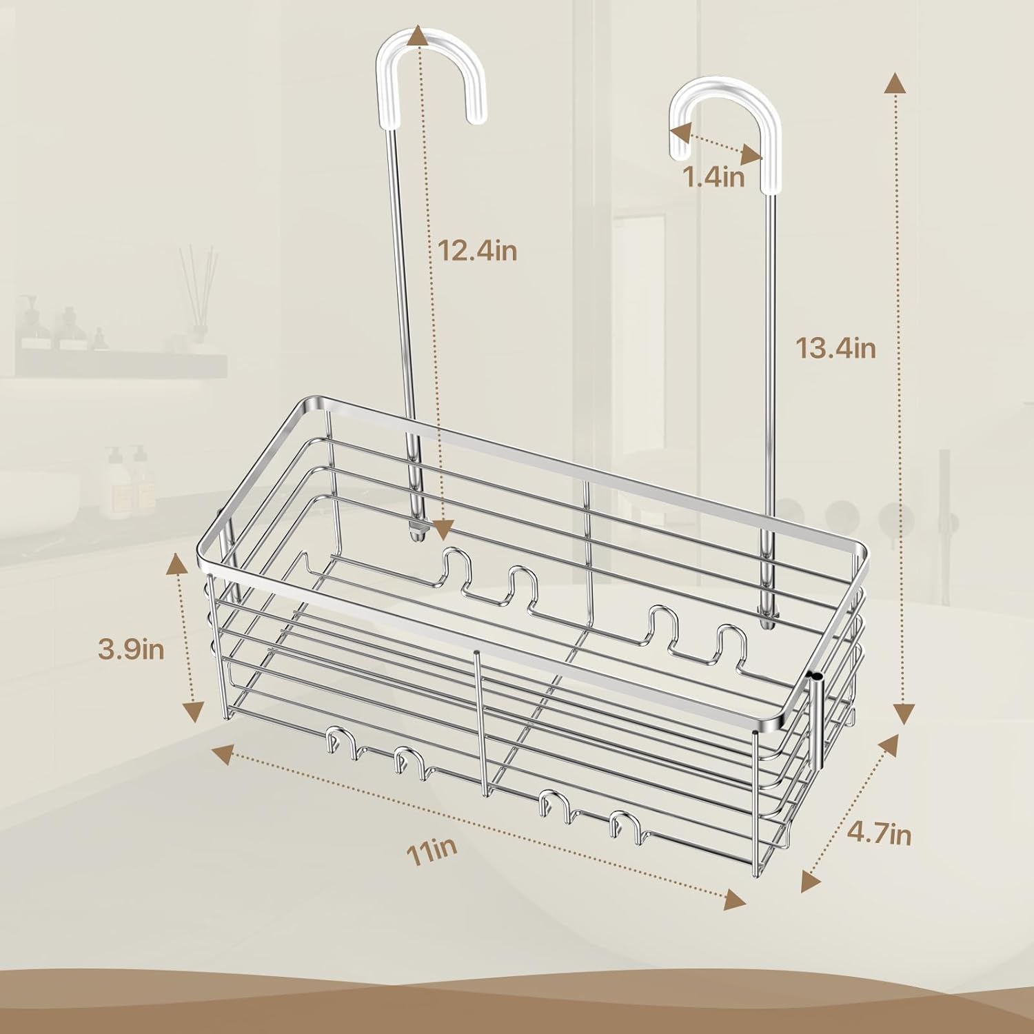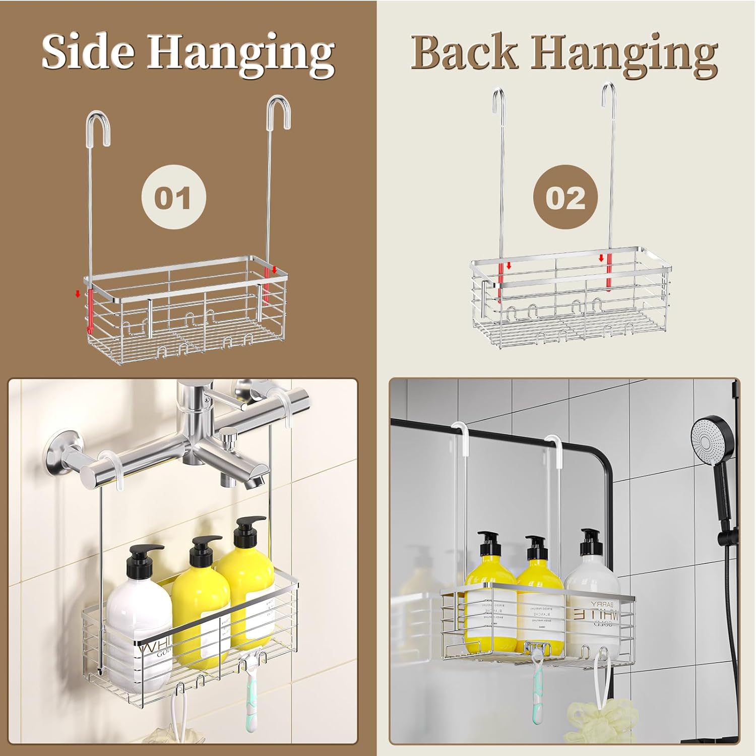 - Rust Resistant: Hanging shower basket is made of grade 304 stainless steel, which is corrosion-resistant to humid environments in the shower, with excellent strength and toughness to hold up your toiletries