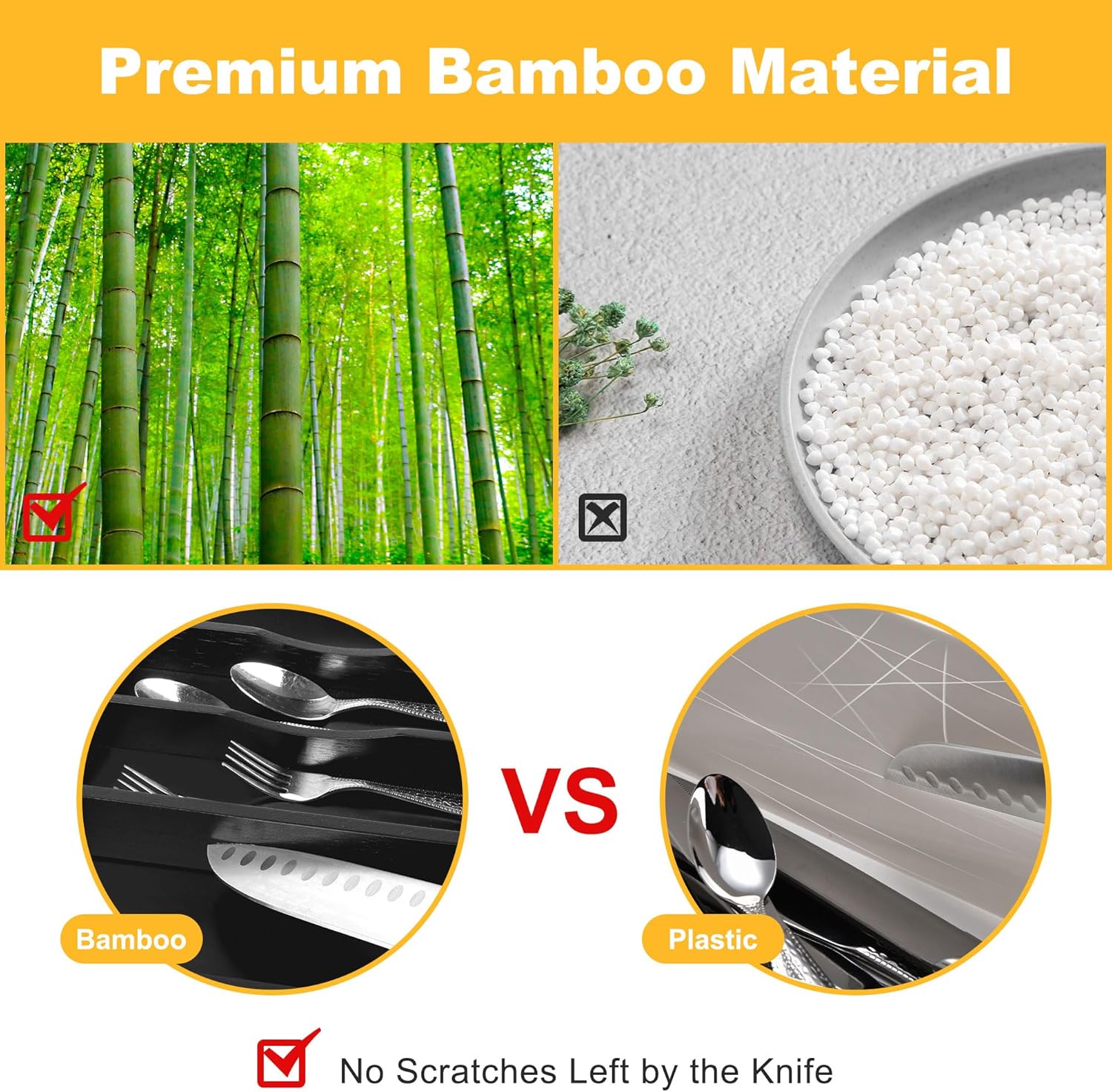 - ✅【Sturdy and Well-made】Our silverware tray for drawer is made of minimally refined natural bamboo, a renewable, sustainable source, making them a green choice, with the age of over 4 years, which makes the silverware holder durable enough for long time use. Unlike the plastic and metal drawer organizer, our flatware & utensil is water & odor resistant, the silverware organizing tray is perfect for years of use, especially in kitchens where things can get messy quickly.