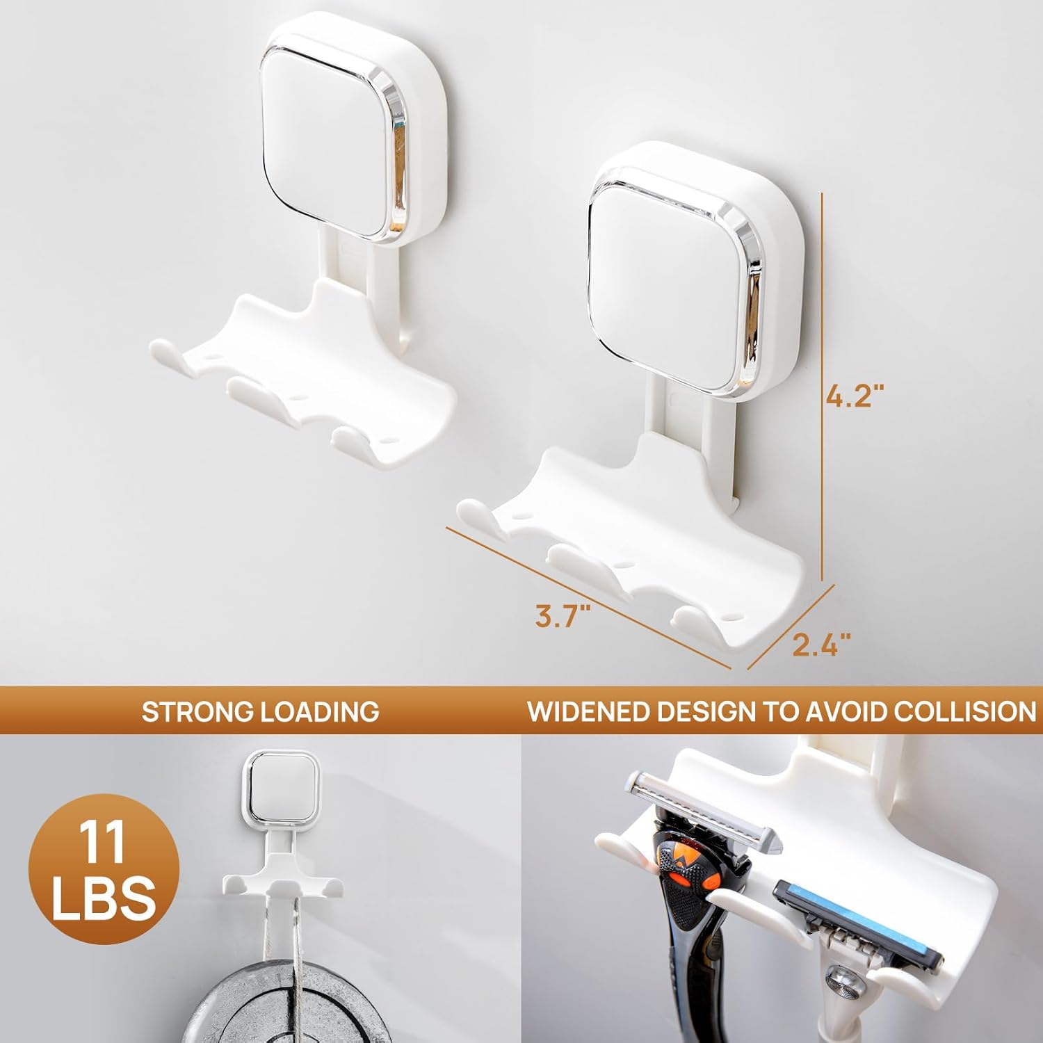 - Multifunctional: Not just for razors, the suction hooks can also used for hanging towels, hat, robe, coat, towel, keys, umbrellas, etc. You can install the hook in the kitchen, bathroom, living room, anywhere you need to storage items