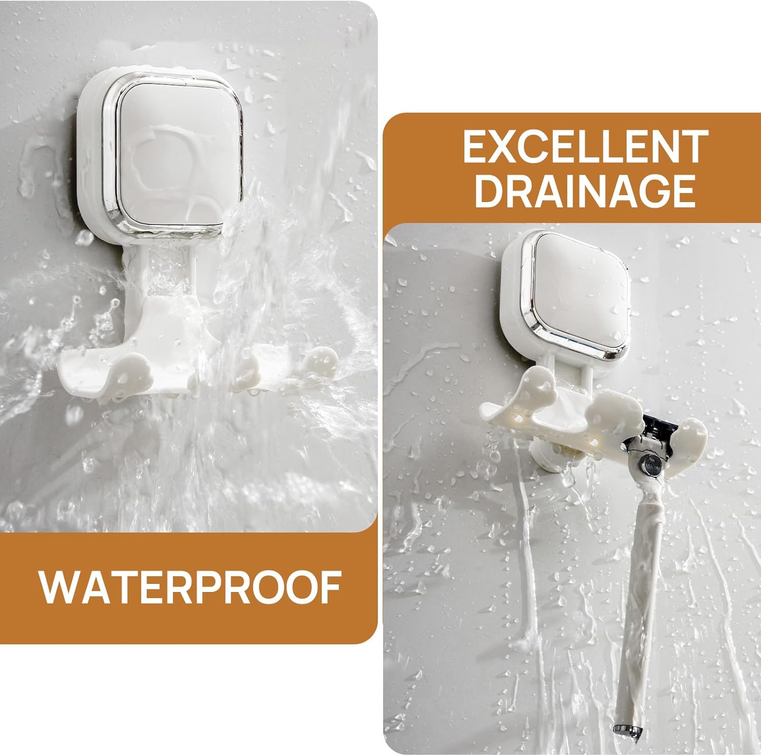 LEVERLOC Vacuum Suction Cup Razor Holder for Shower 2 Pack, Heavy Duty Shower Hooks for Towel, Loofah, Razor, Cell Phone, Damage-Free Hanging Plated Suction Cup Hooks, Easy to Install and Reuse, White