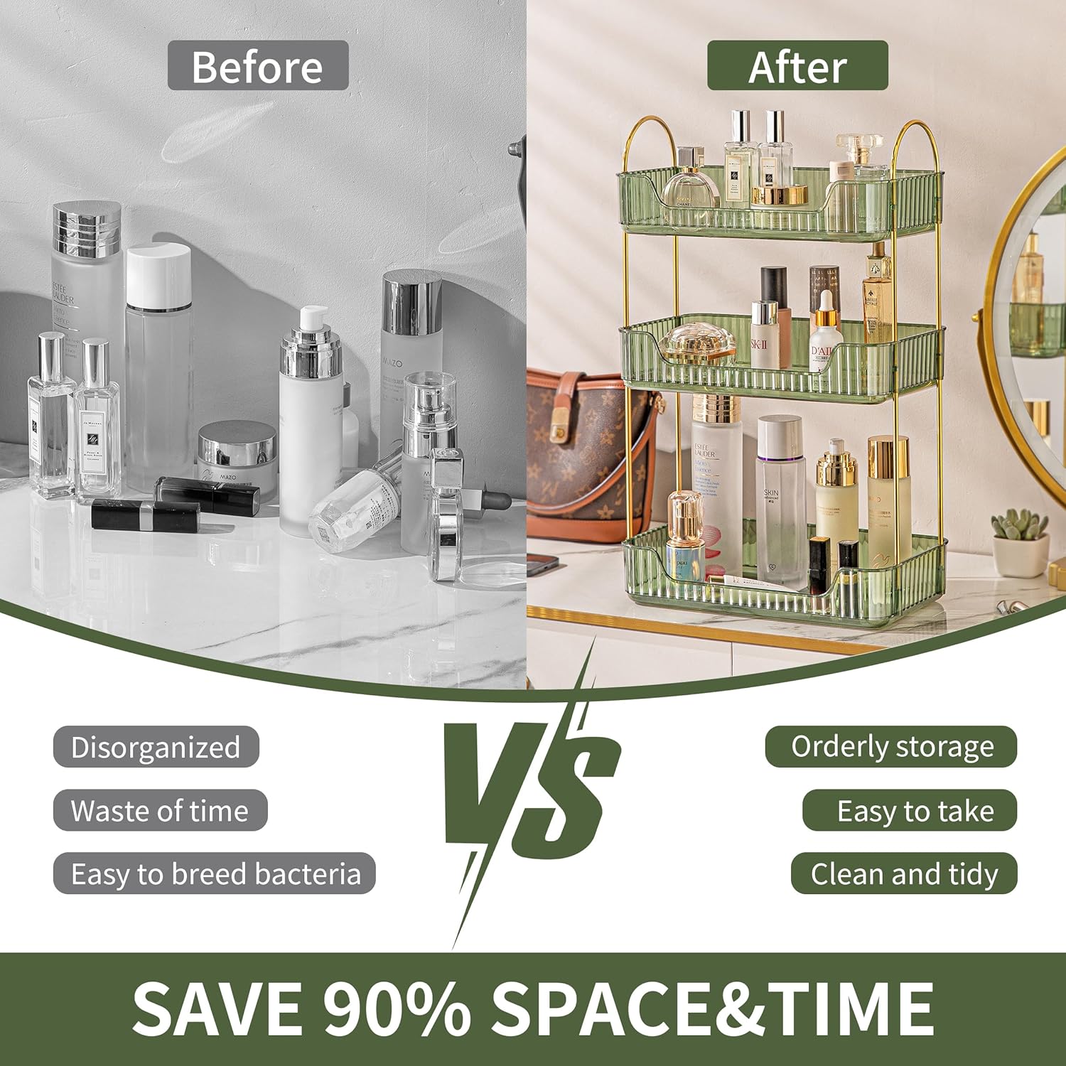 3 Tier Bathroom Organizer Countertop Makeup Perfume Tray Skincare Organizer for Bathroom Dresser Vanity (Green)