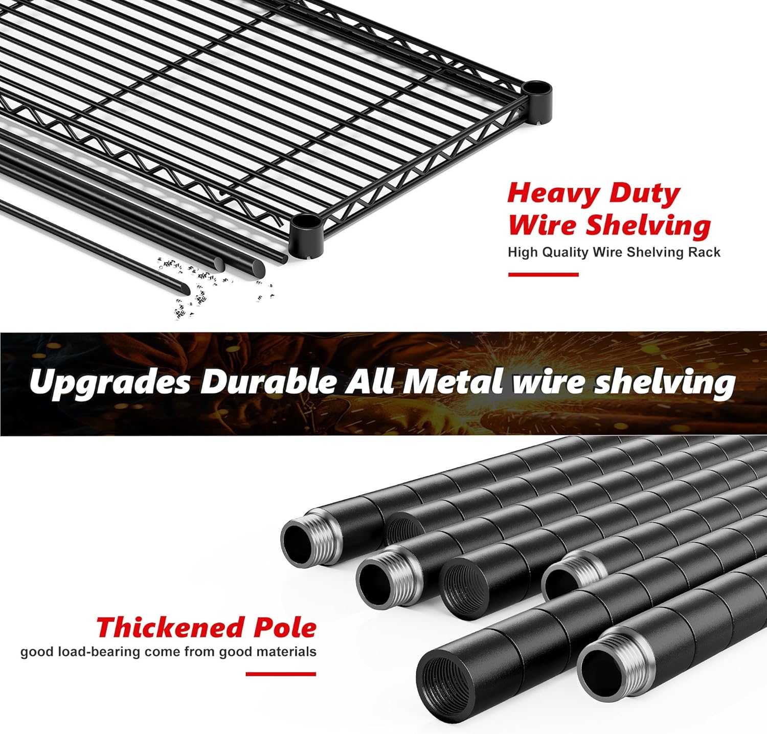 - 【61.7"" W*72.4"" H*15.8"" D Monster Size Garage Shelving】61.7""W pantry shelves has three times the capacity of the market shelves, which can easily meet your storage needs. This extra wide wire shelving is ideal for garages, basements, kitchens, or commercial spaces like restaurants and supermarkets.